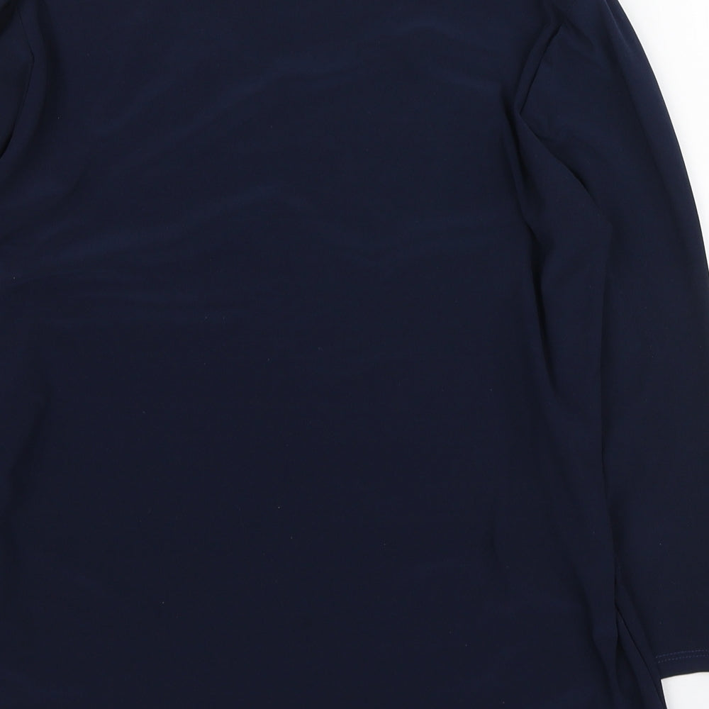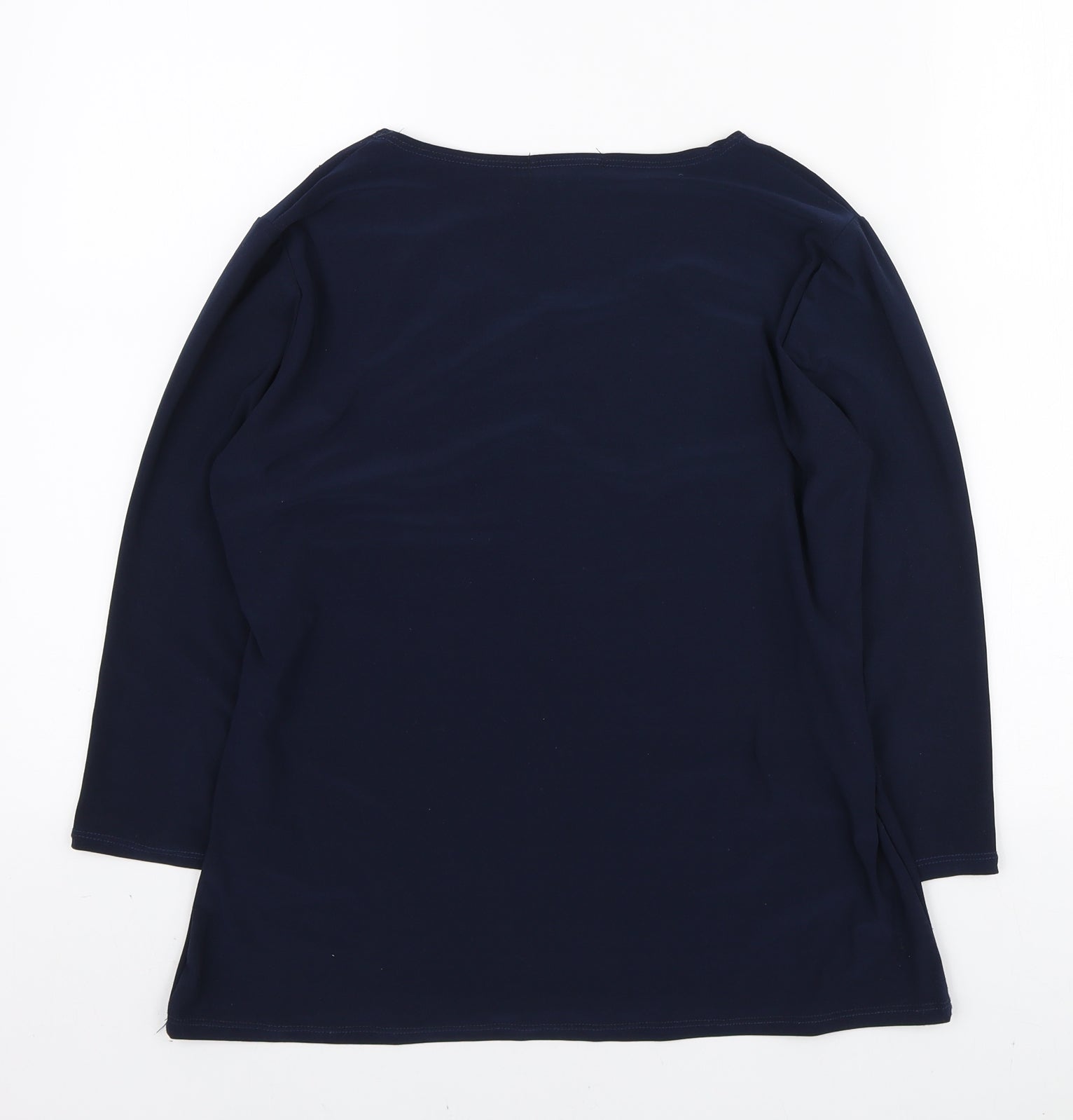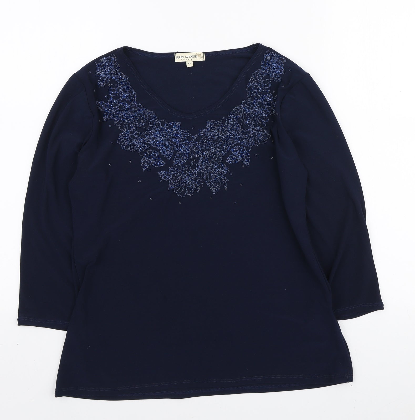 First Avenue Womens Blue Floral Polyester Basic T-Shirt Size 12 Round Neck