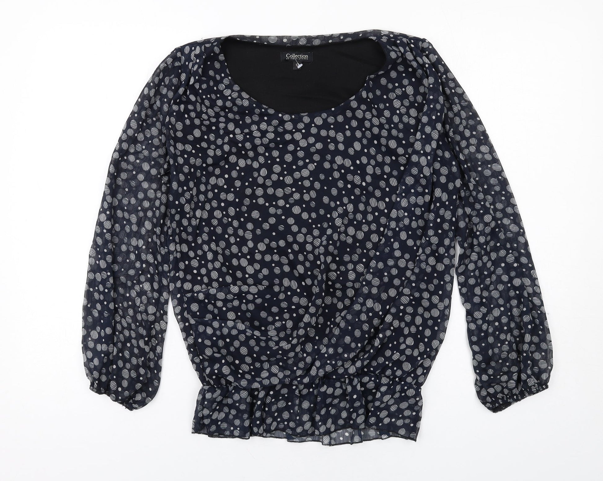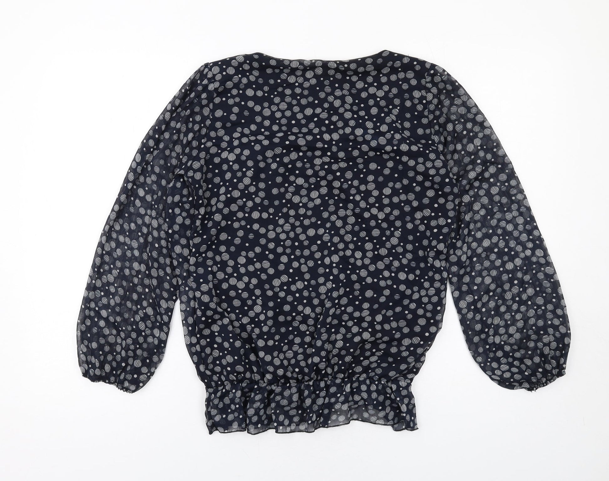 First Avenue Womens Blue Polka Dot Polyester Basic Blouse Size 10 Round Neck