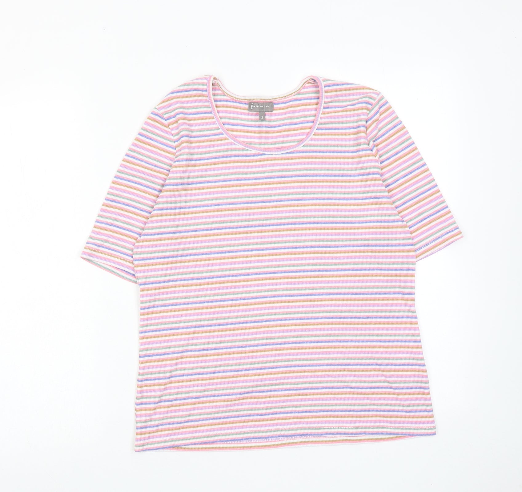 First Avenue Womens Multicoloured Striped Cotton Basic T-Shirt Size S Round Neck