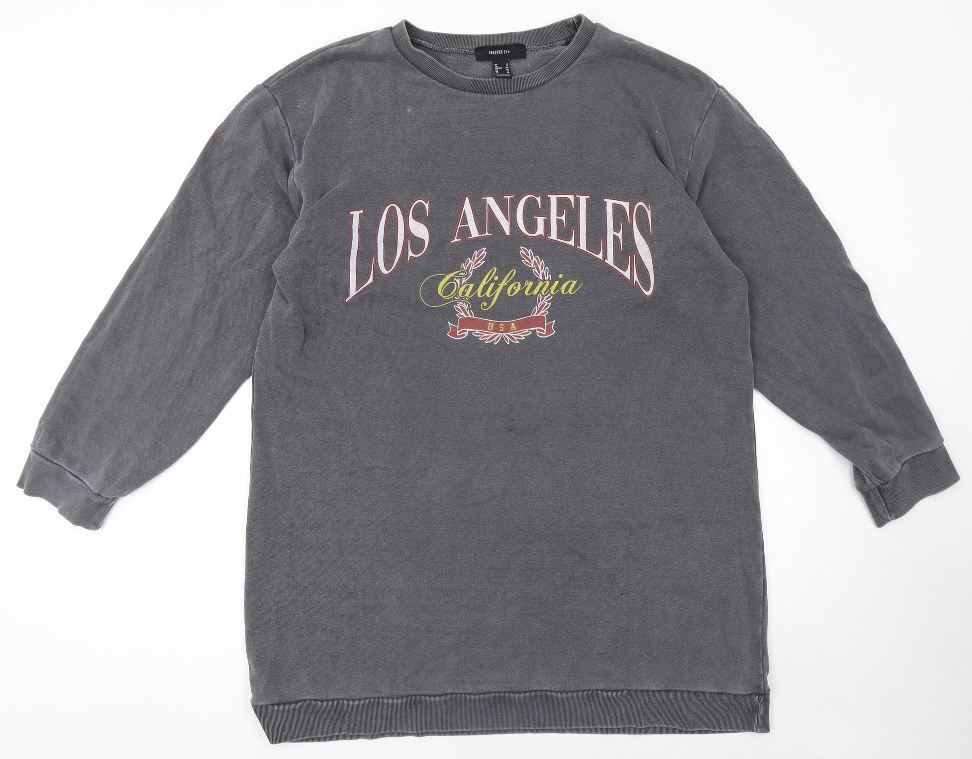 Forever 21 Women Grey Cotton Los Angeles Graphic T-Shirt Dress Size 20