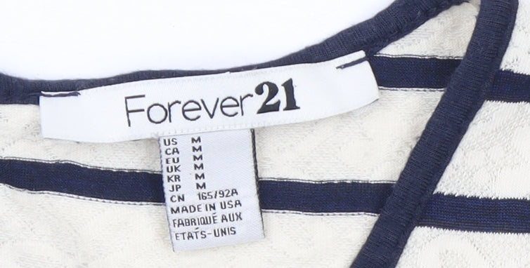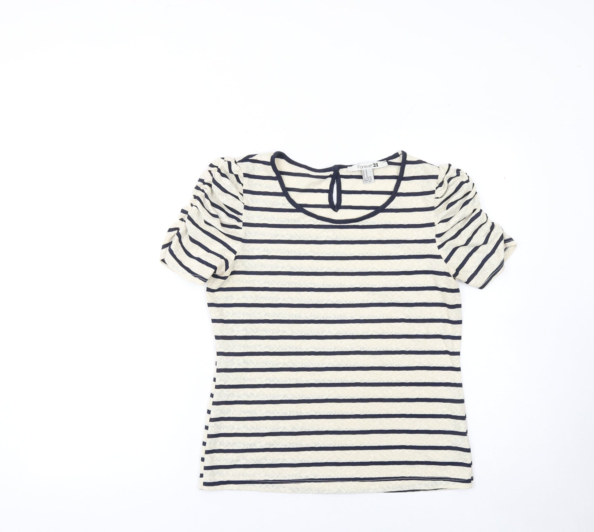 Forever 21 Women’s Beige Striped Lace Puff Sleeve T-Shirt Size M