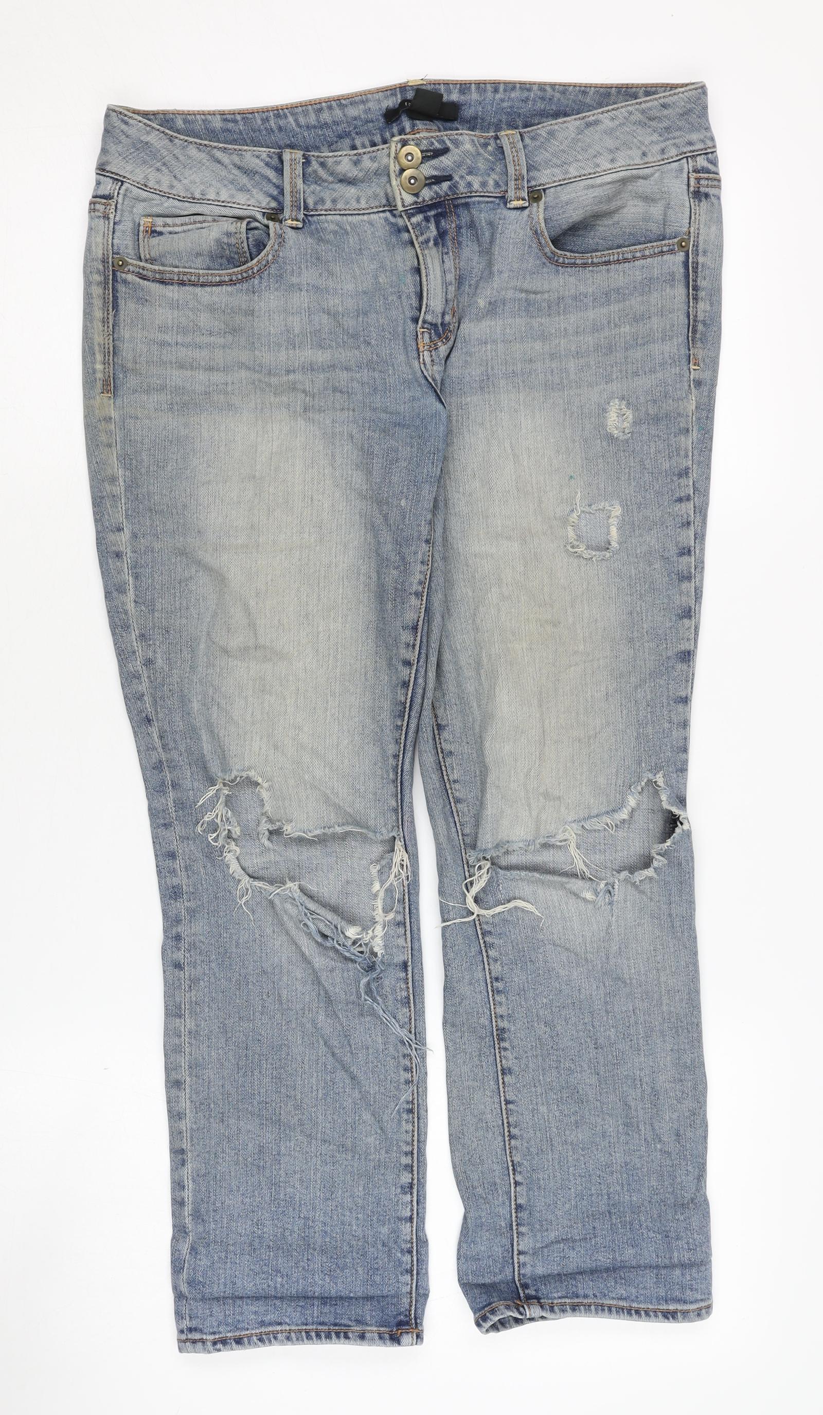 Forever 21 Women’s Light Blue Distressed Straight Jeans