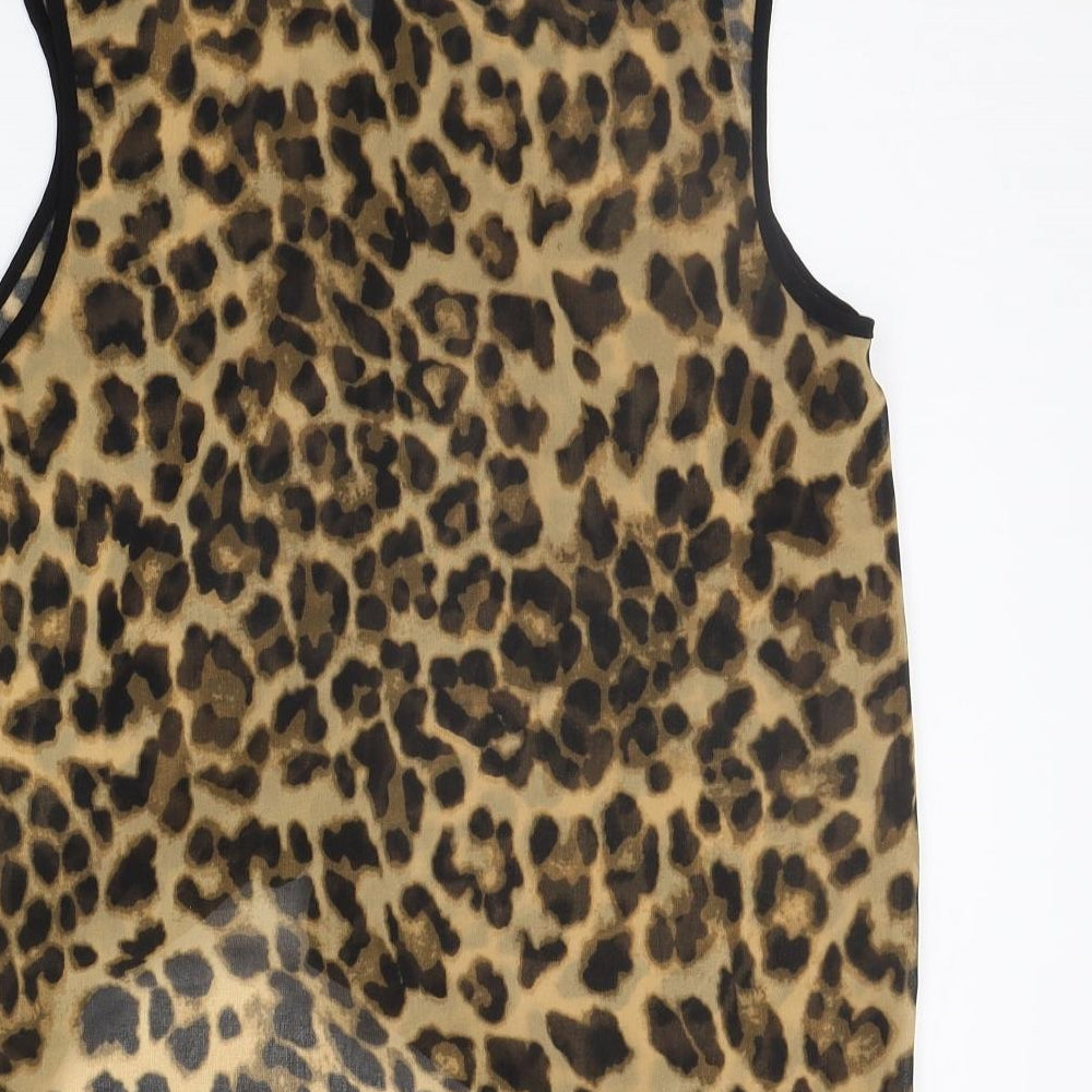 FOREVER 21 Womens Beige Animal Print Basic Button-Up Size M