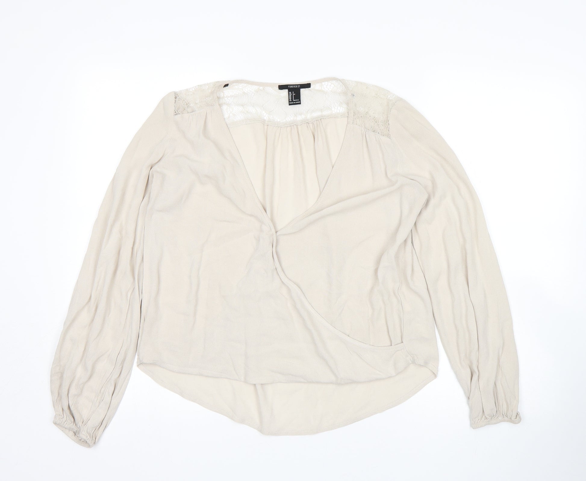 FOREVER 21 Womens Beige Basic Blouse Size S