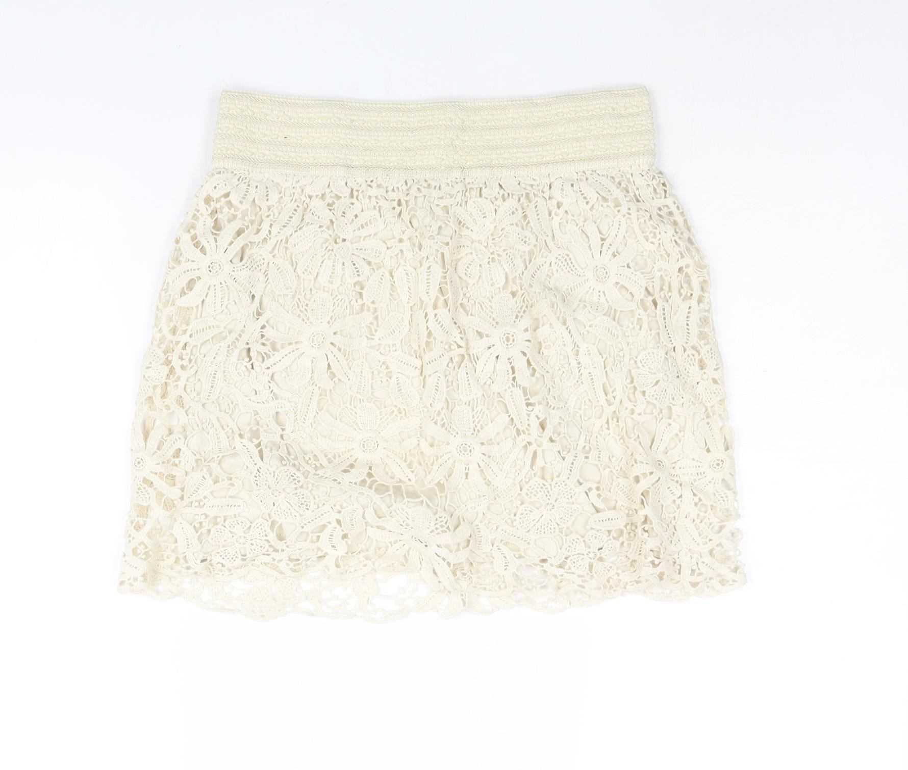 FOREVER 21 Womens Beige Cotton Mini Skirt Size M - Elasticated Waist