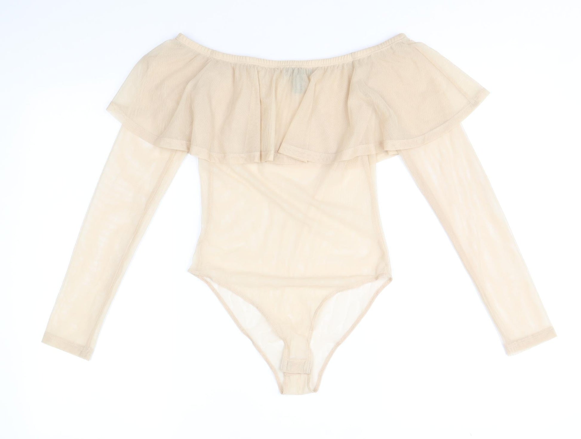 FOREVER 21 Womens Beige Polyester Bodysuit One-Piece Size S Snap