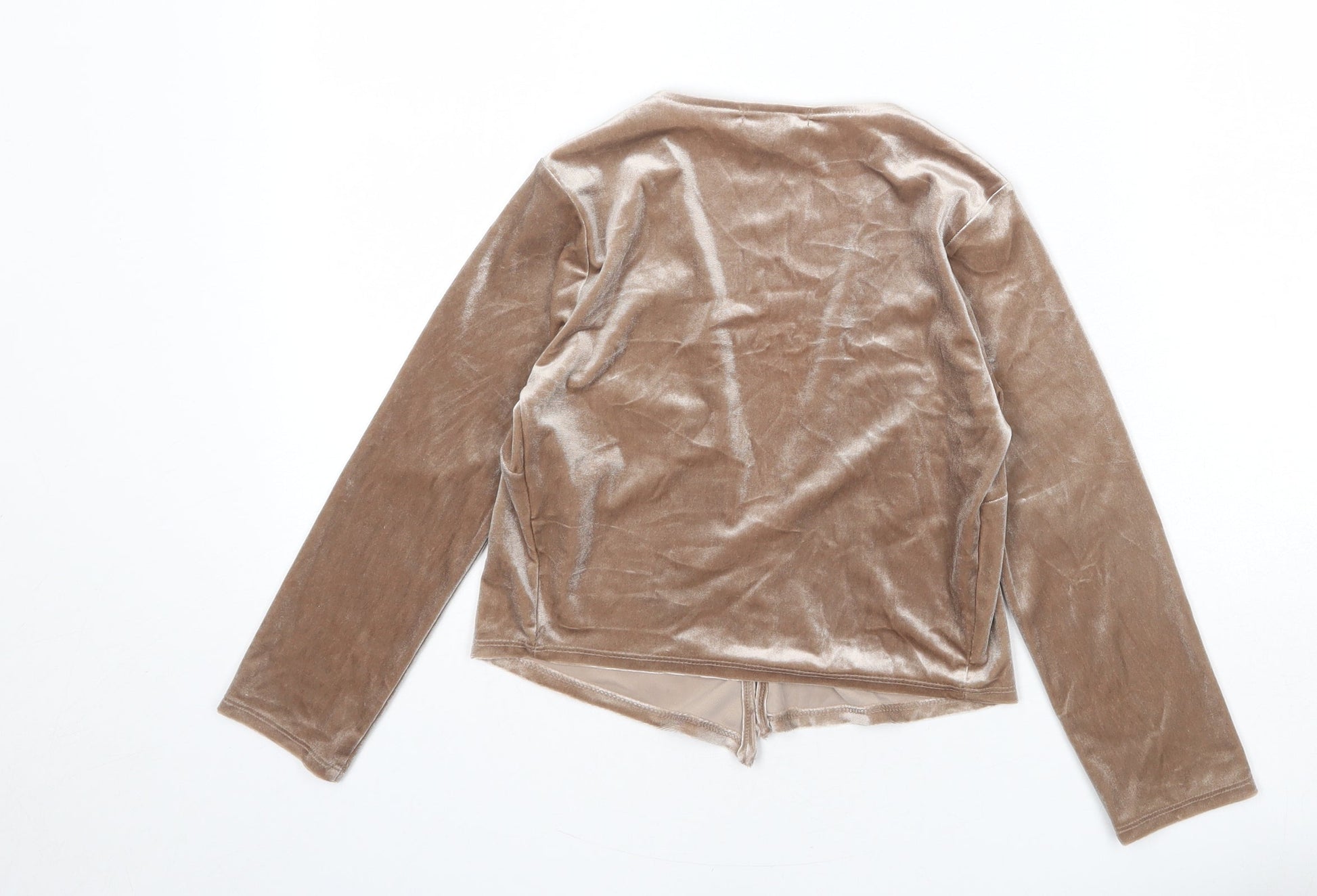 FOREVER 21 Womens Beige Polyester Cropped T-Shirt Size S V-Neck - Cardigan Style