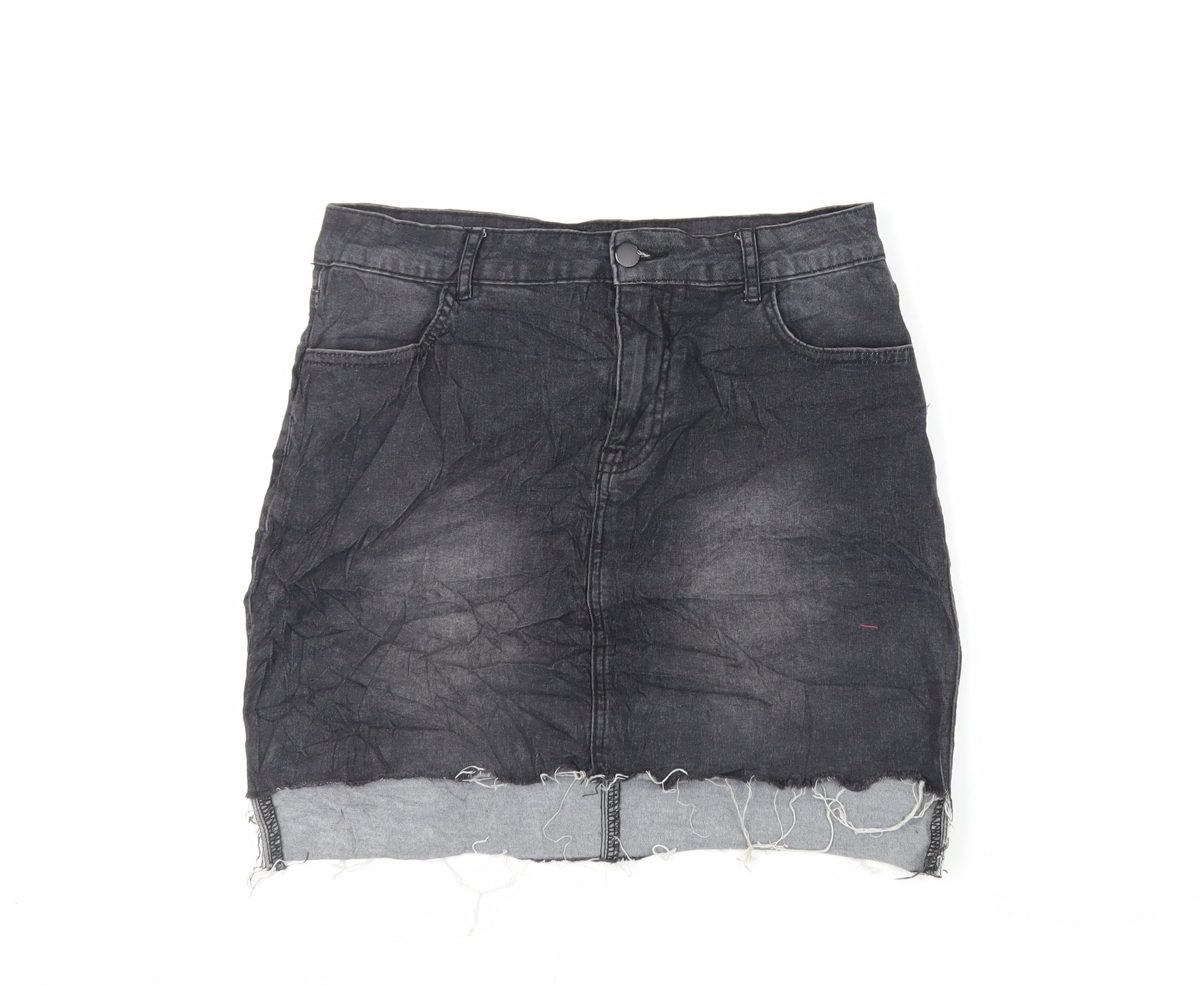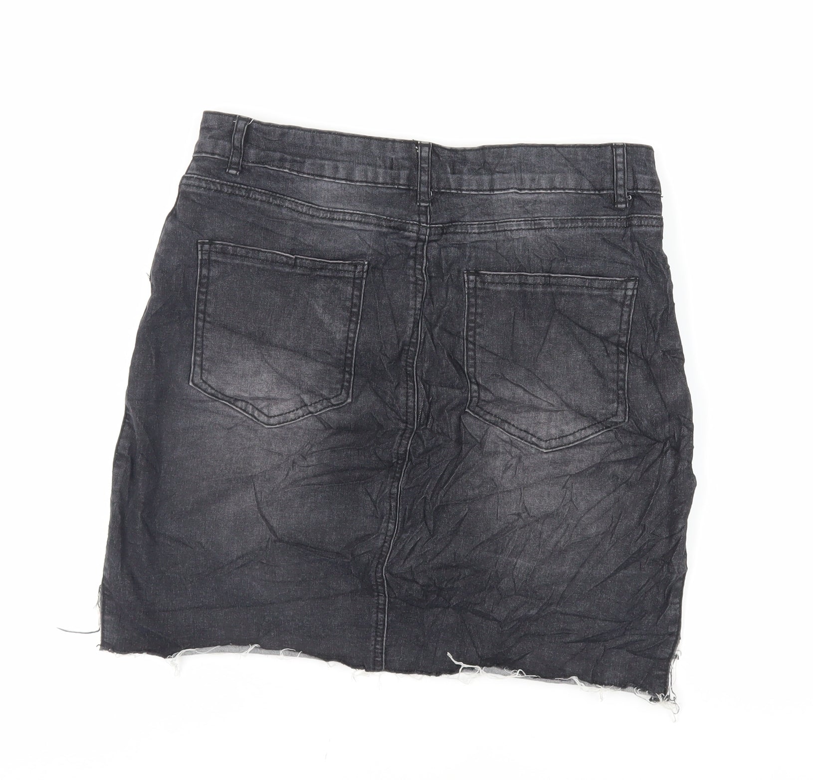 FOREVER 21 Womens Black Cotton Mini Skirt Size L Zip - Pockets
