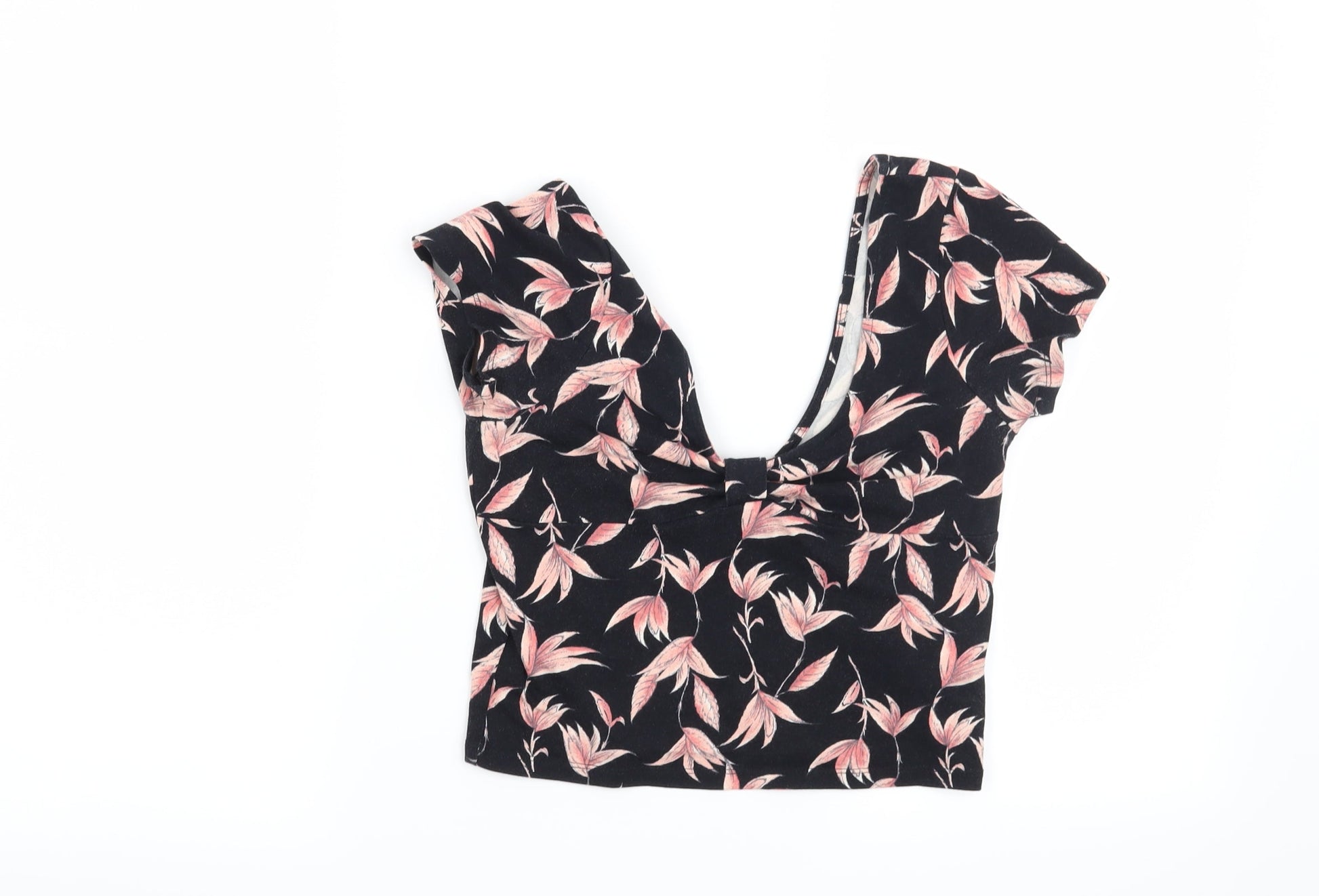 FOREVER 21 Womens Black Floral Basic T-Shirt Size M