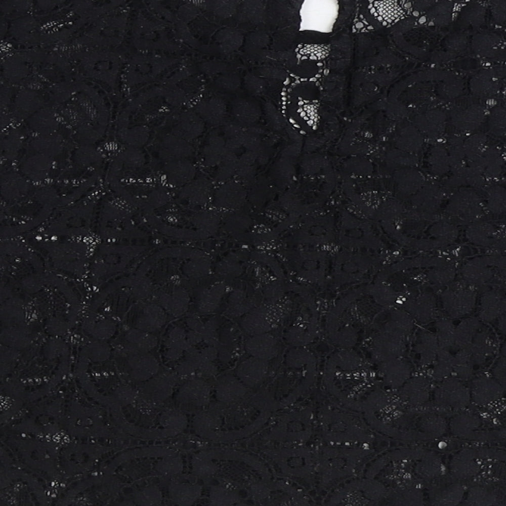 FOREVER 21 Womens Black Geometric Polyester Basic T-Shirt Size M Round Neck