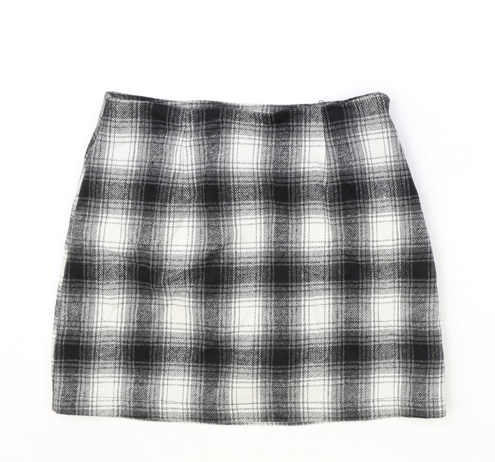FOREVER 21 Womens Black Plaid Polyester Straight & Pencil Skirt Size S Zip