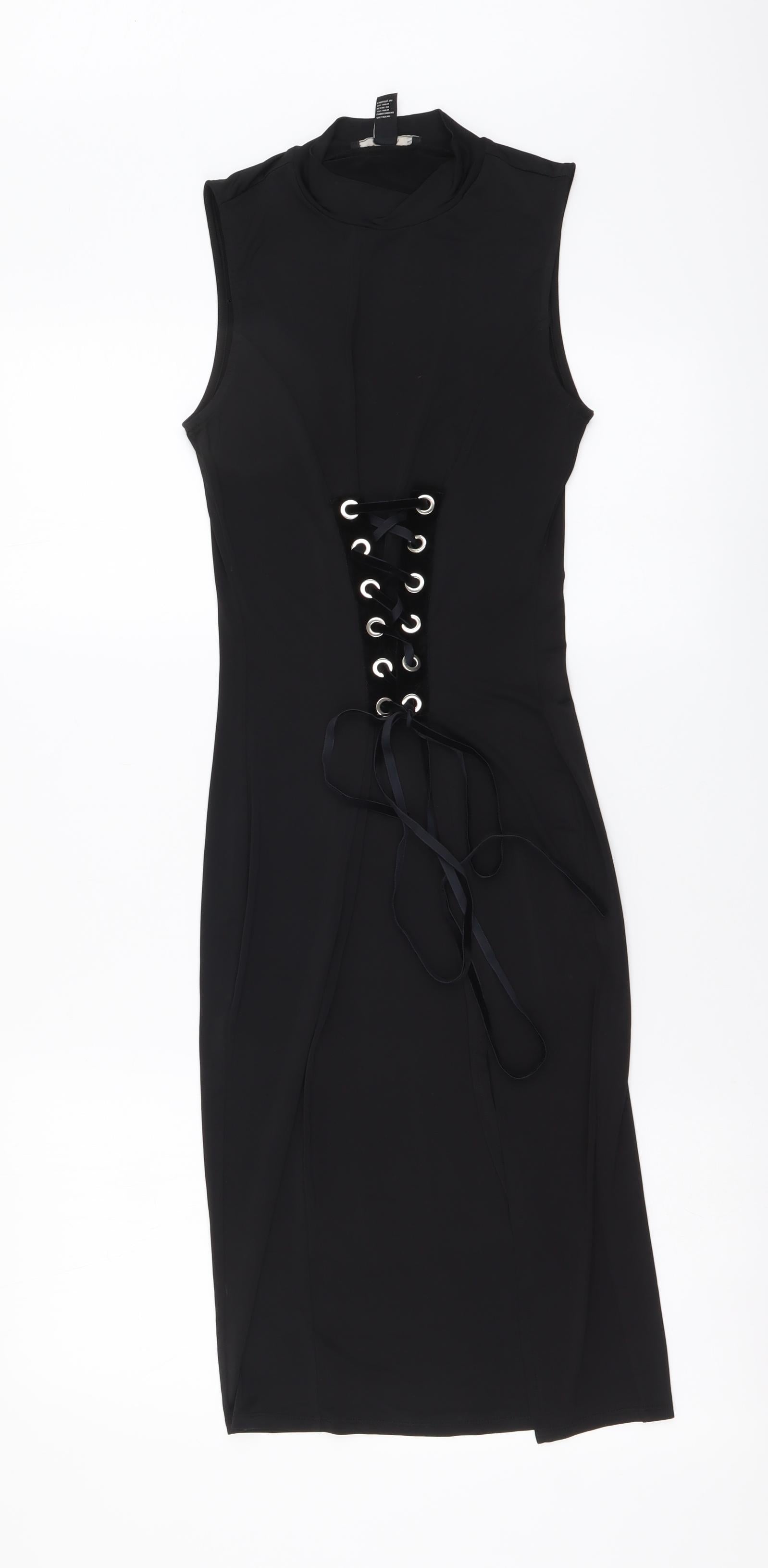 FOREVER 21 Womens Black Polyester Bodycon Size S Mock Neck Pullover
