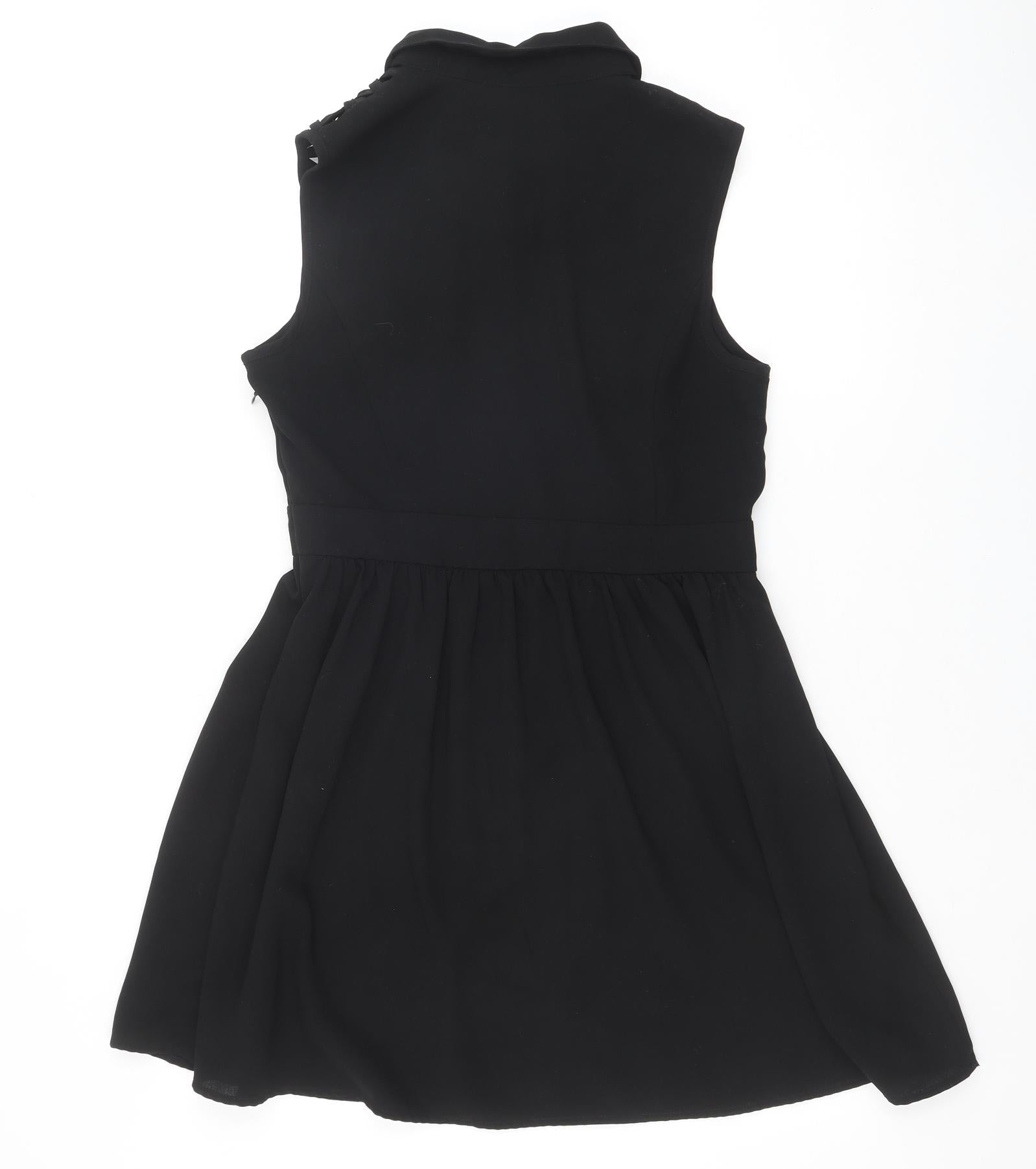 FOREVER 21 Womens Black Polyester Shirt Dress Size L Collared Zip - Lattice Shoulder Detail