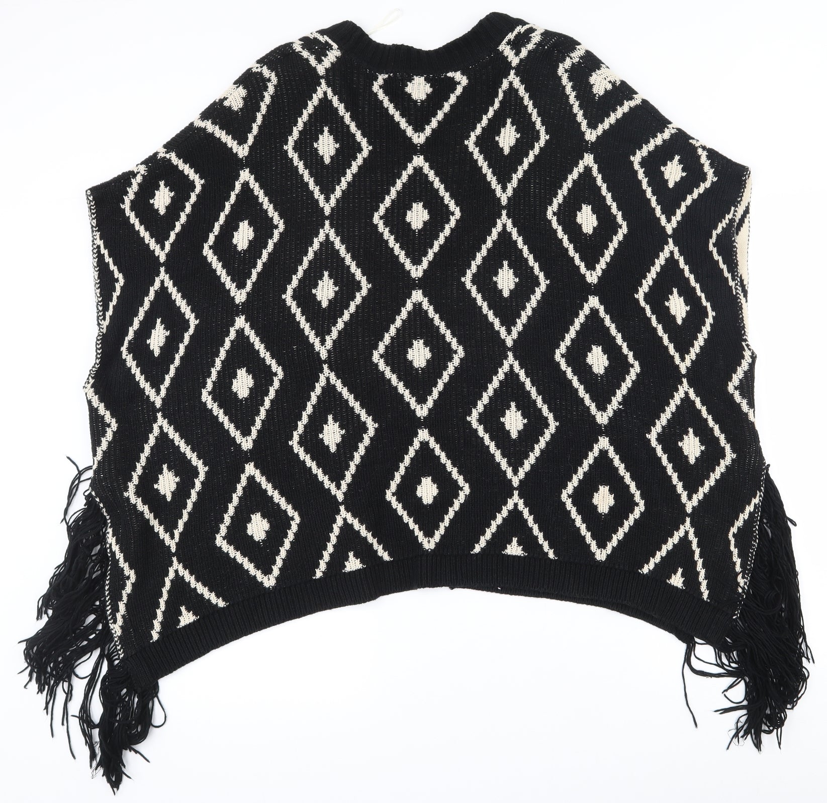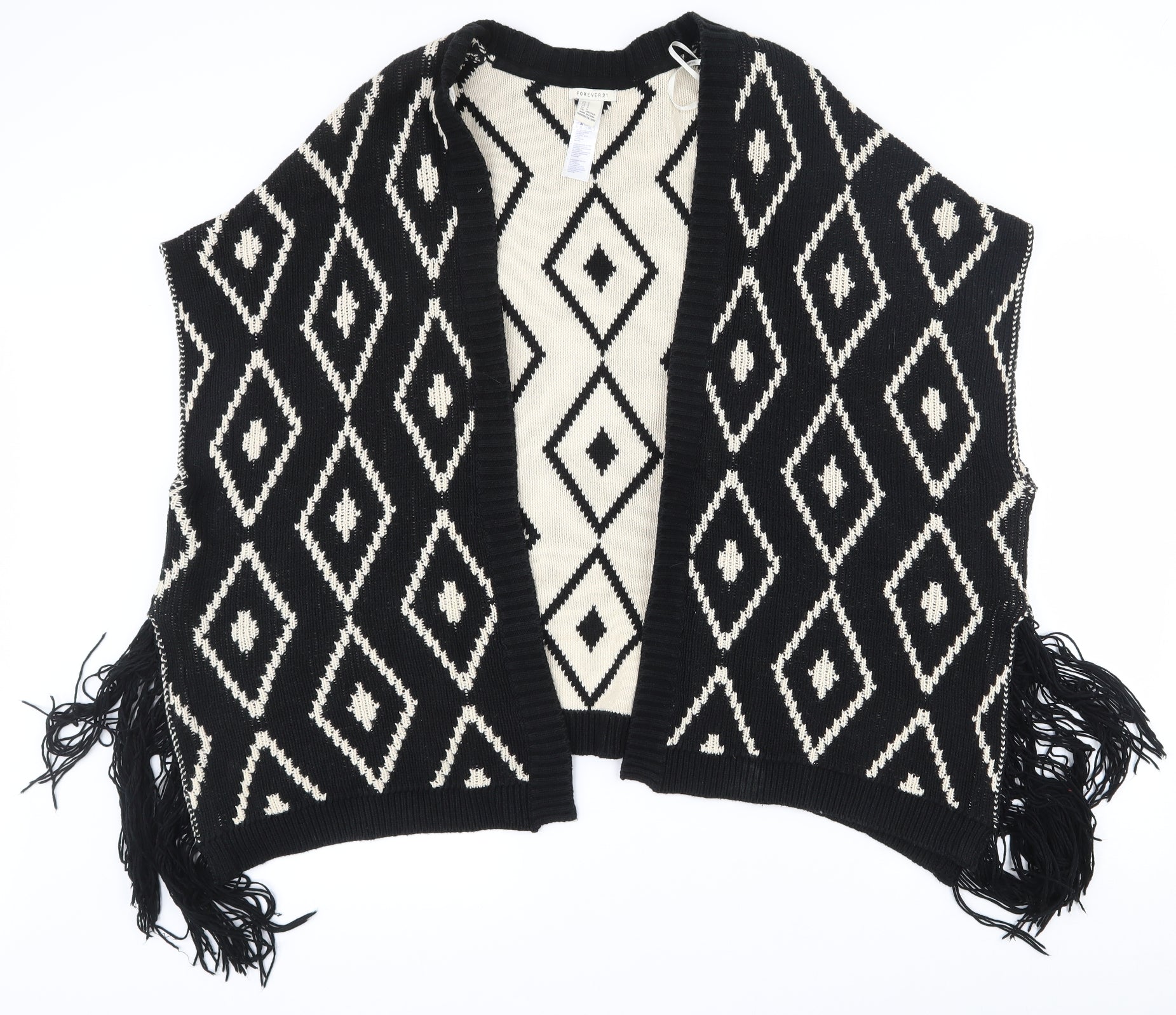 FOREVER 21 Womens Black V-Neck Geometric Cotton Cardigan Jumper Size S - Shawl with arm holes