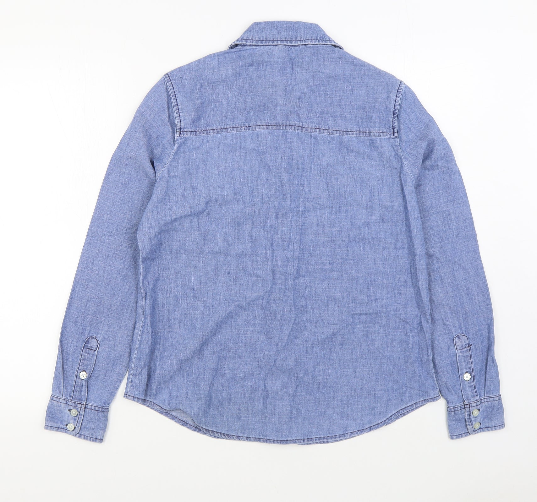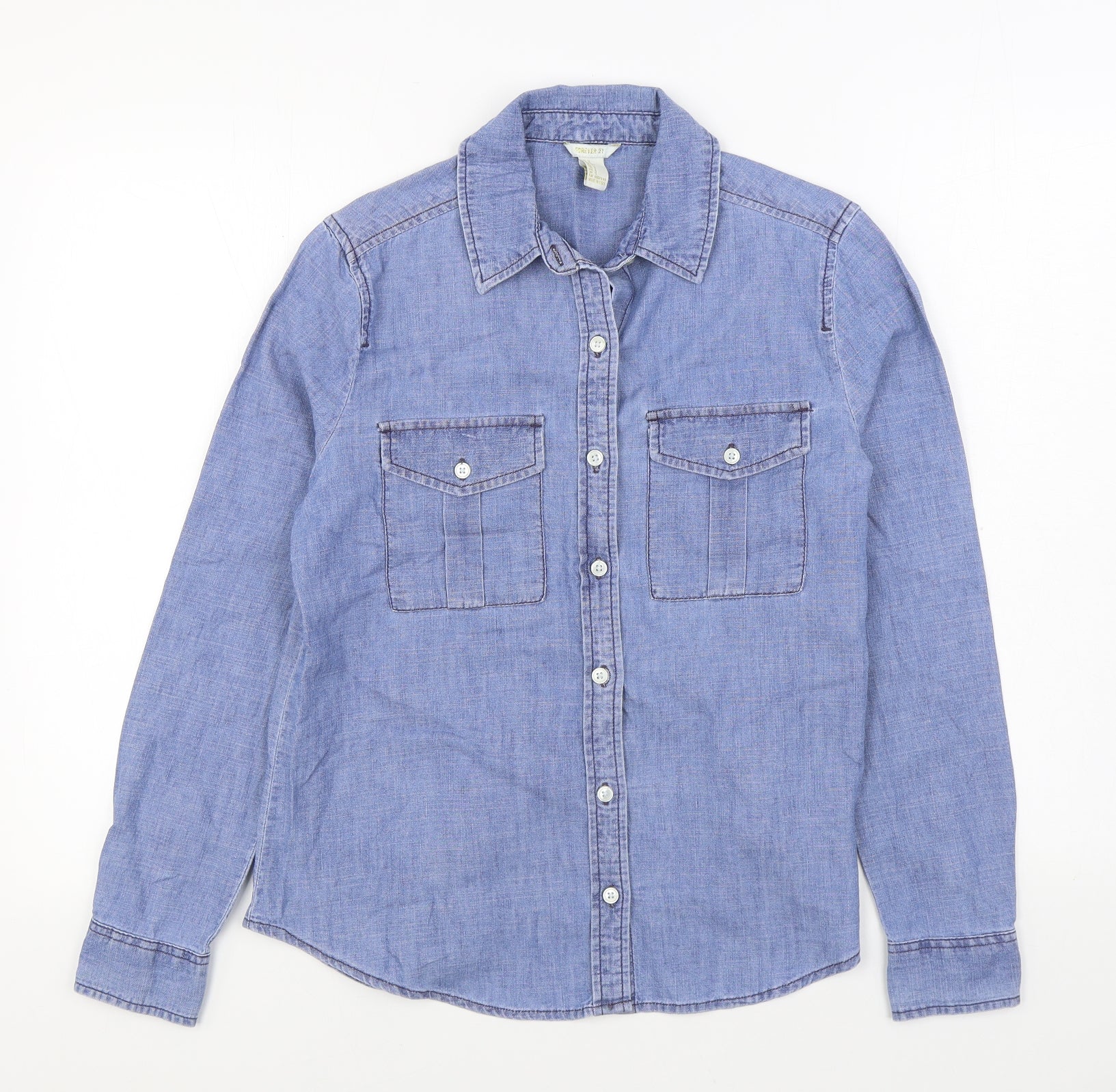 FOREVER 21 Womens Blue 100% Cotton Basic Button-Up Size S Collared