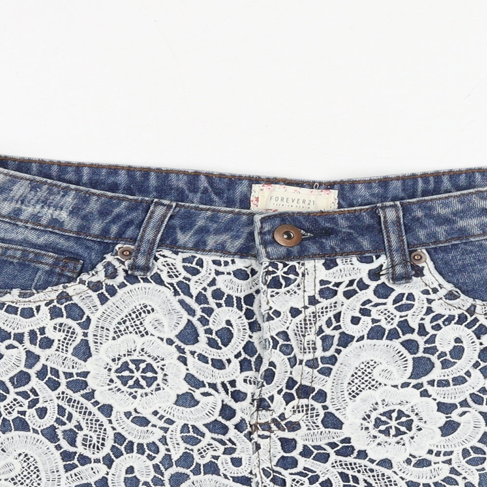 FOREVER 21 Womens Blue 100% Cotton Cut-Off Shorts Size 29 in Regular Zip - Crocheted Lace Front