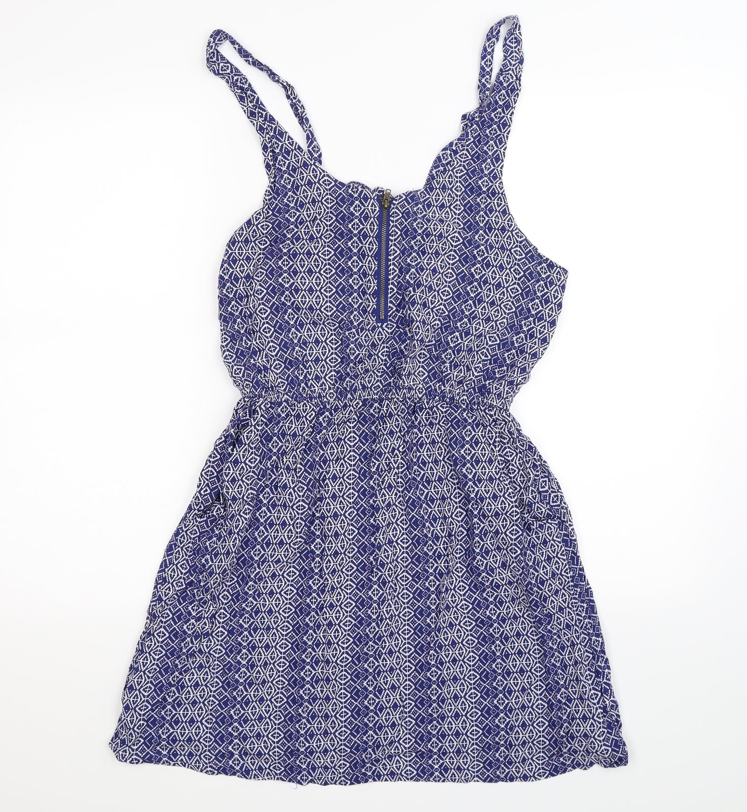 FOREVER 21 Womens Blue Geometric Fit & Flare Size M