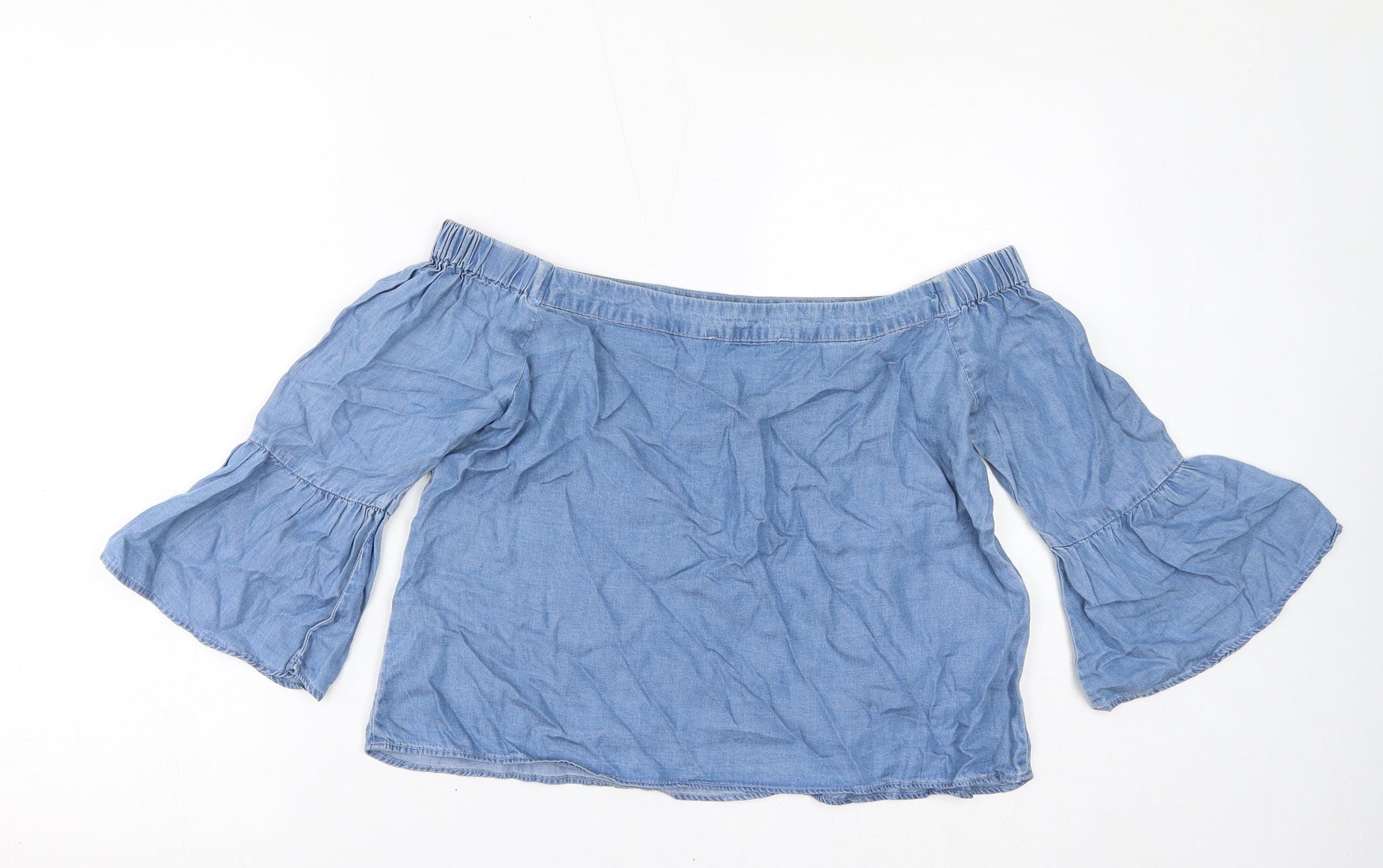 FOREVER 21 Womens Blue Lyocell Basic T-Shirt Size S Off the Shoulder