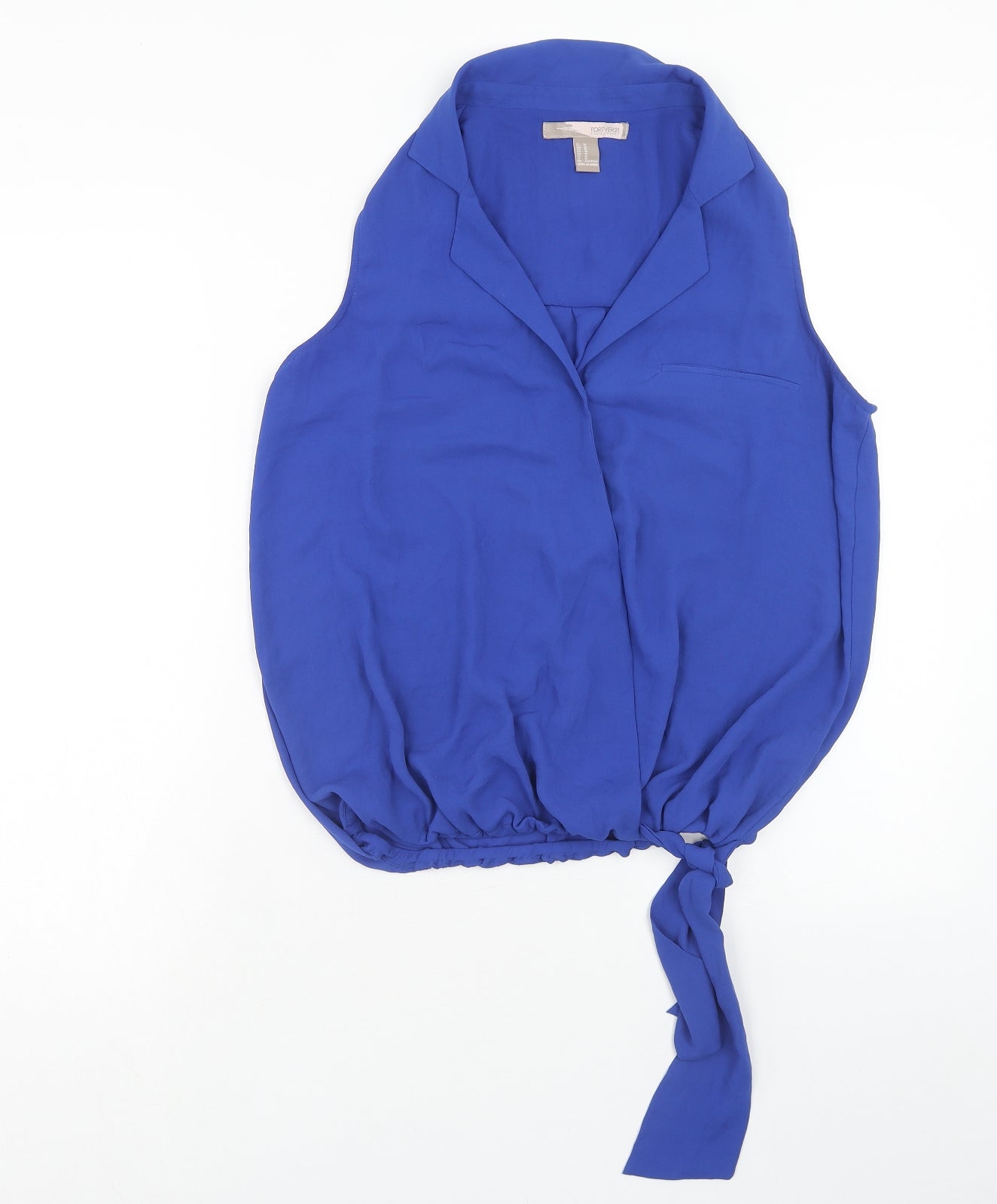 FOREVER 21 Womens Blue Polyester Basic Tank Size M Collared - Knot Front