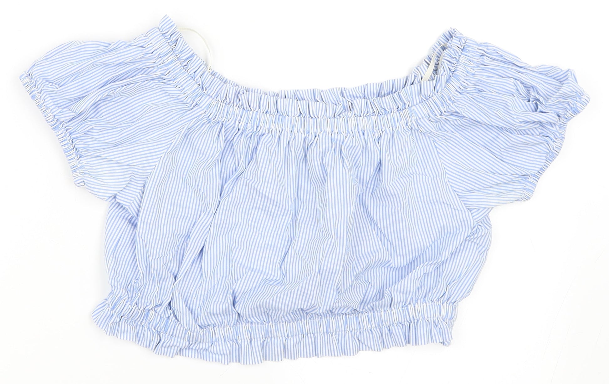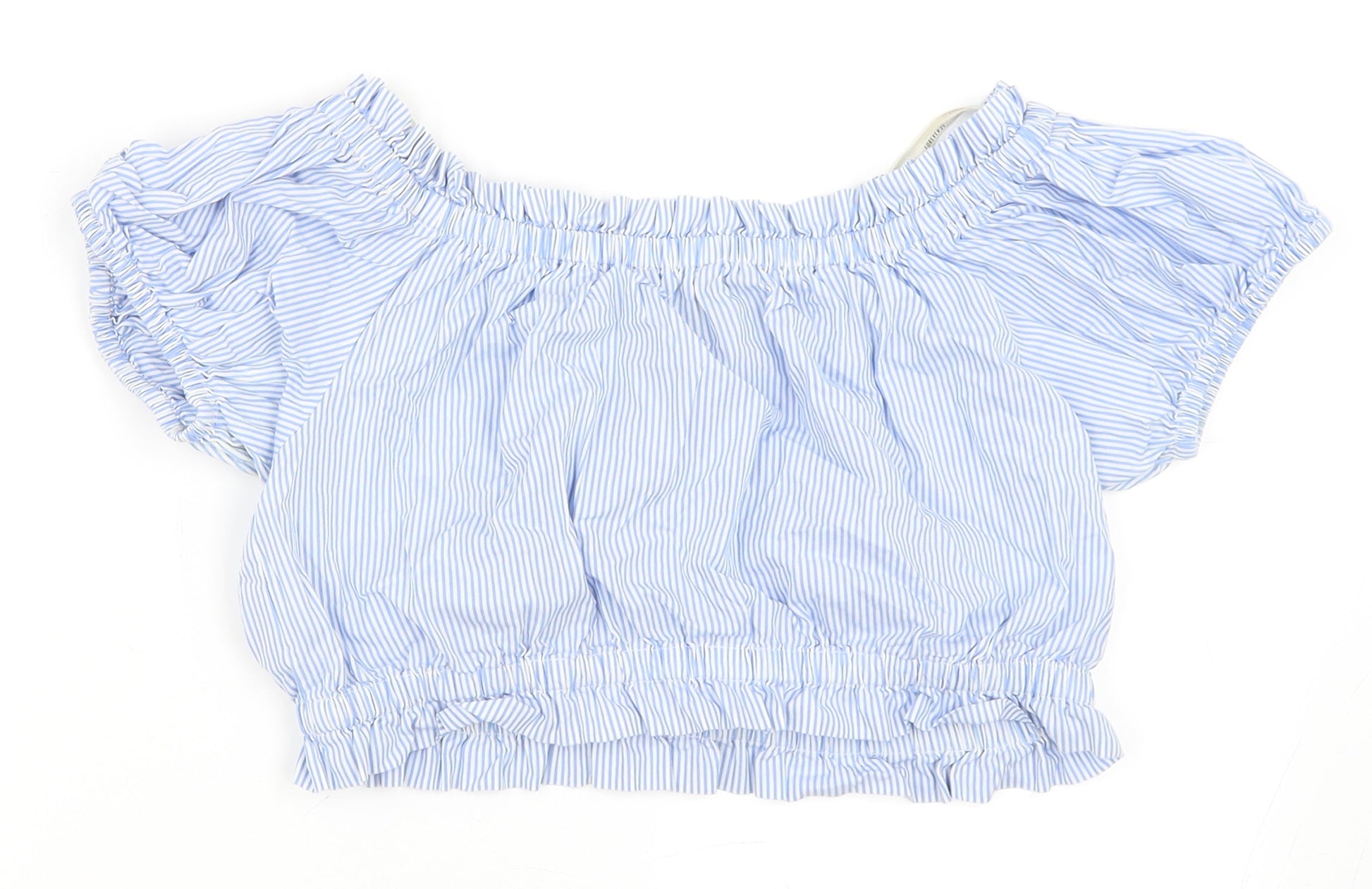 FOREVER 21 Womens Blue Striped Cropped Blouse Size M