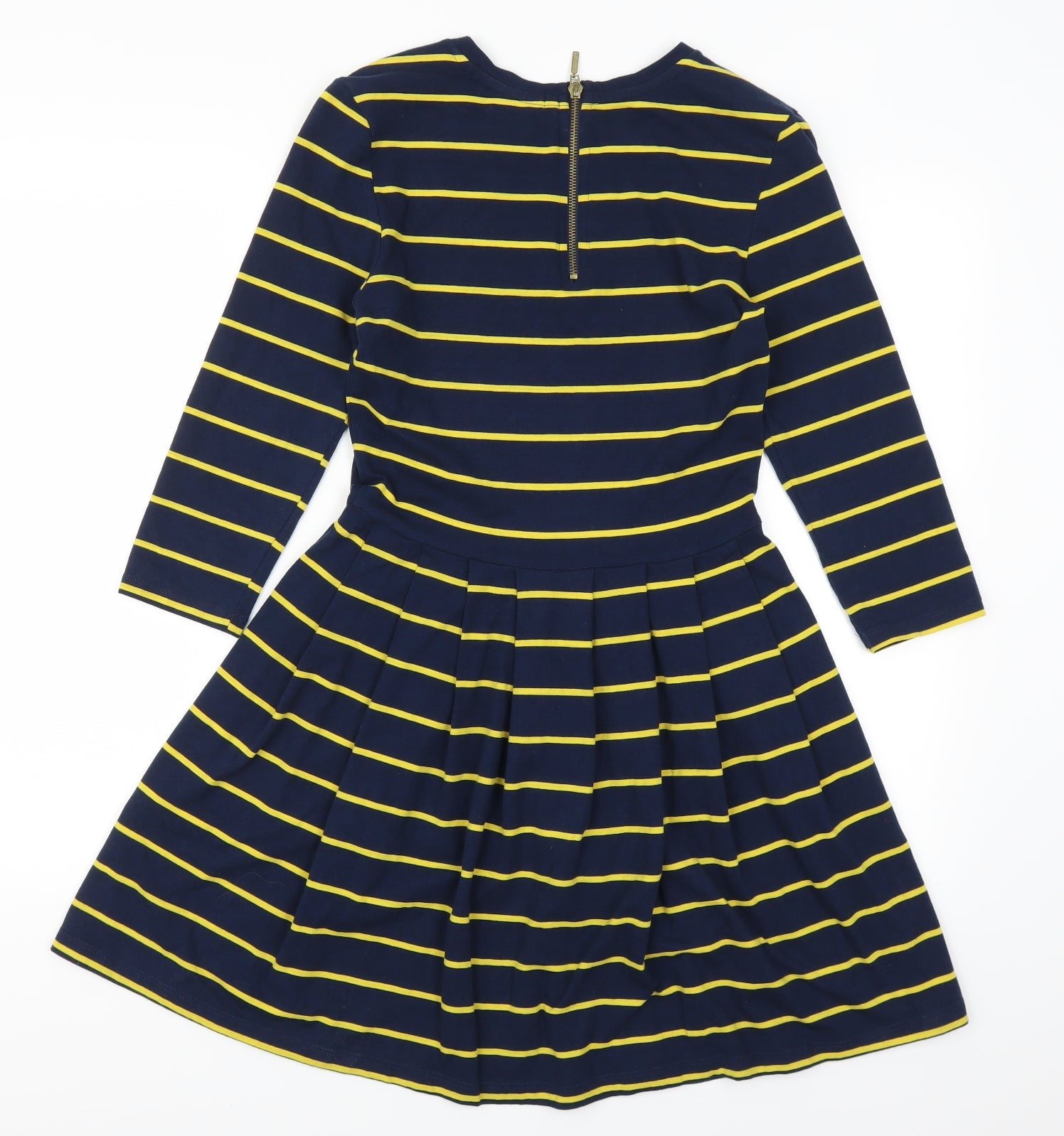 FOREVER 21 Womens Blue Striped Skater Dress Size S - Yellow Stripes
