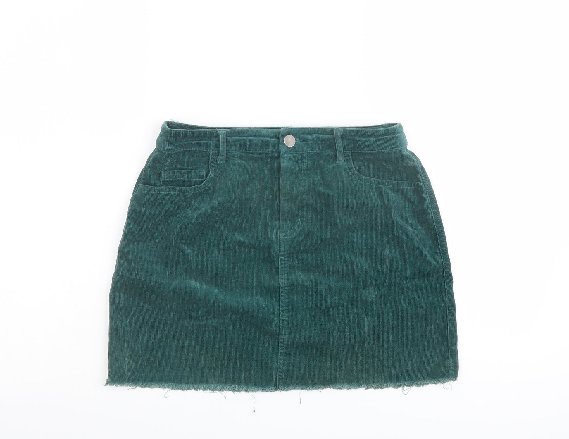 FOREVER 21 Womens Green Cotton Mini Skirt Size S Button