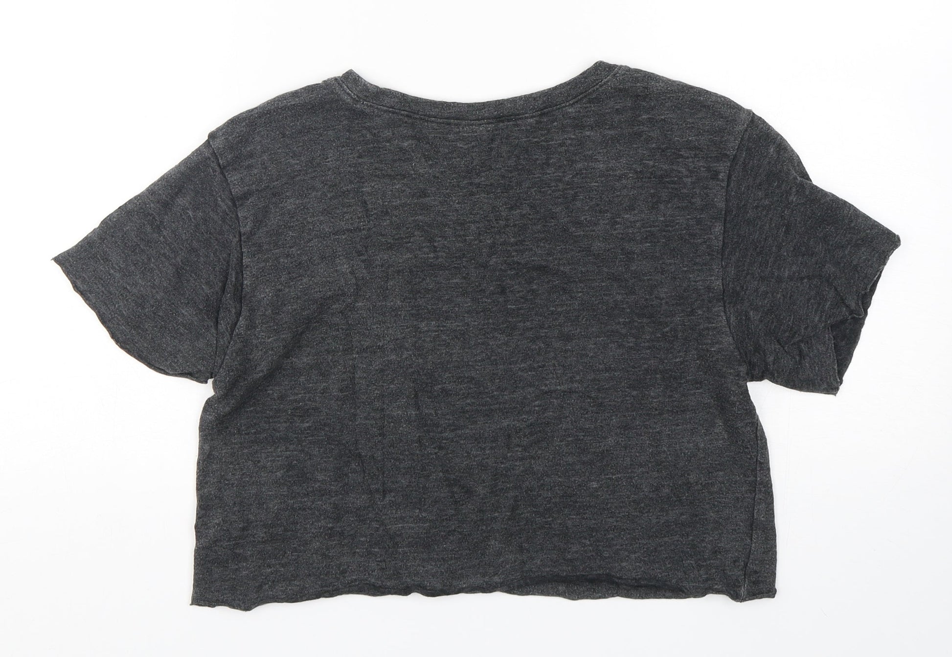 FOREVER 21 Womens Grey Cotton Cropped T-Shirt Size S Round Neck