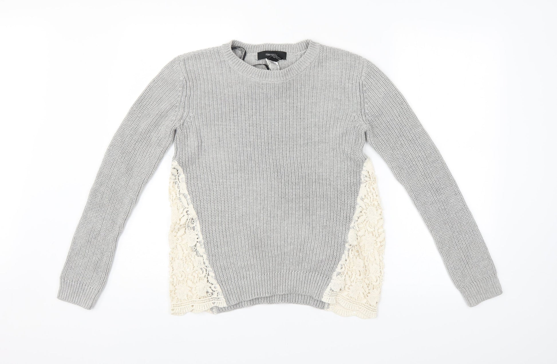FOREVER 21 Womens Grey Floral Pullover Jumper Size S