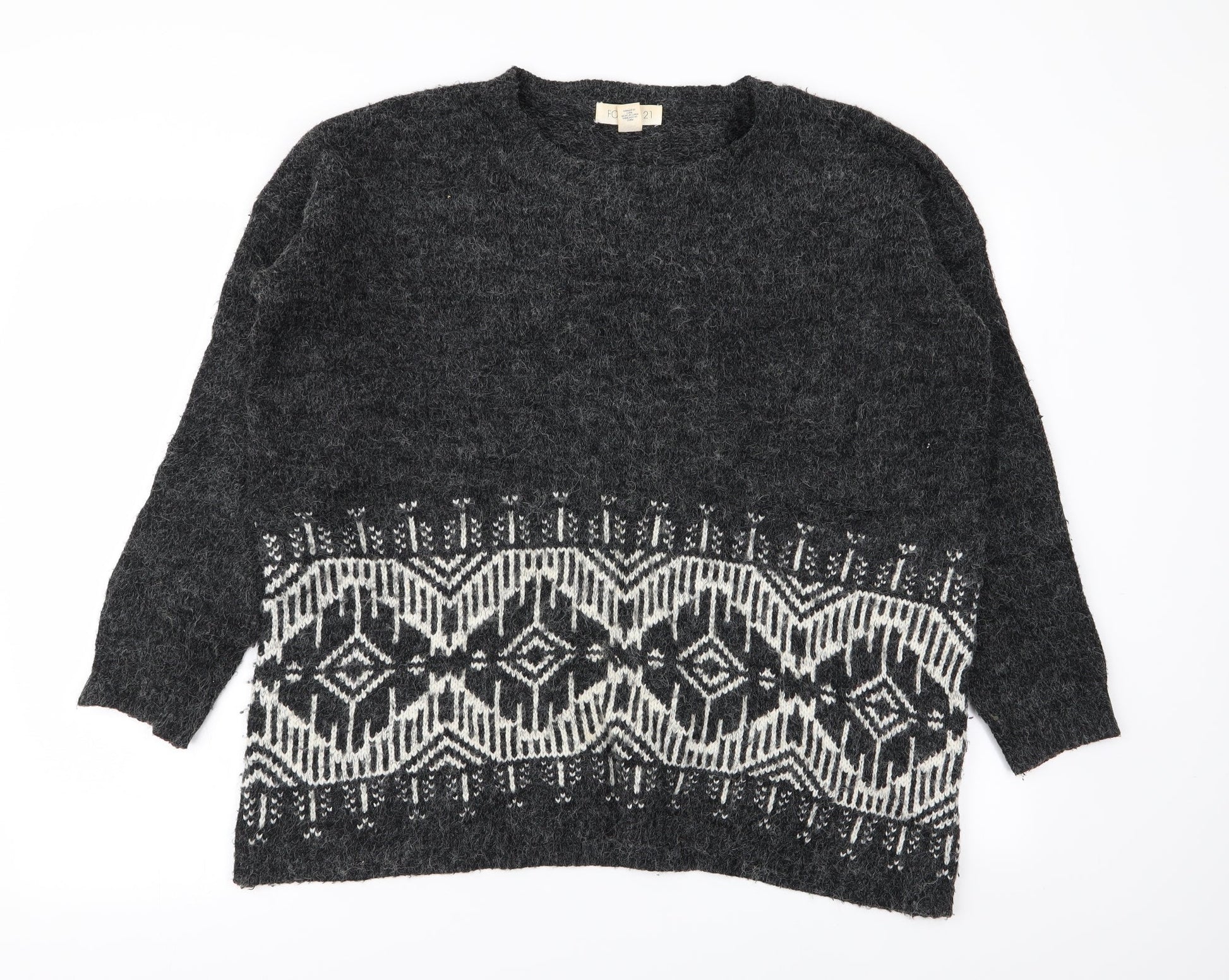 FOREVER 21 Womens Grey Geometric Pullover Jumper Size L