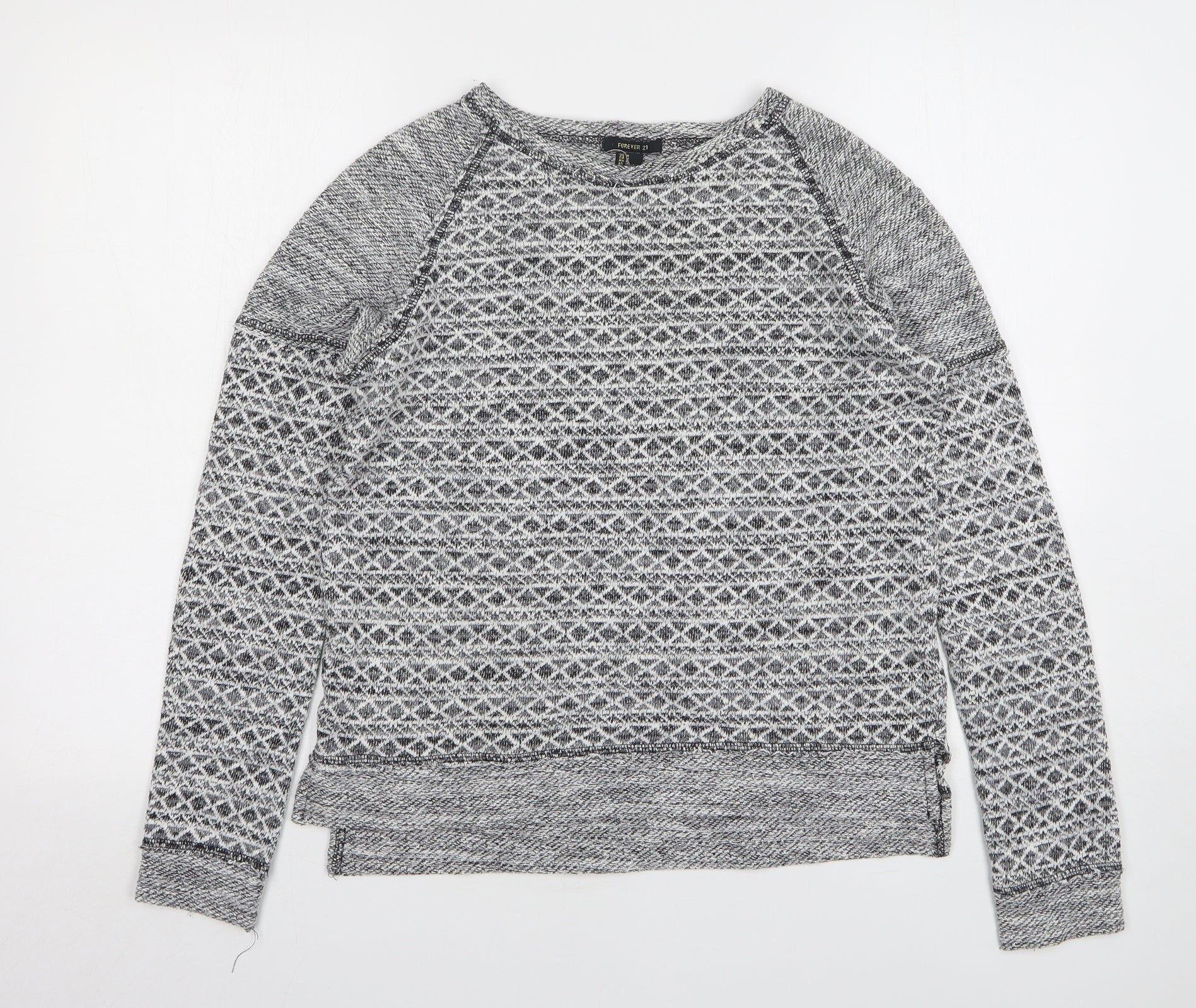 FOREVER 21 Womens Grey Round Neck Geometric Polyester Pullover Jumper Size M