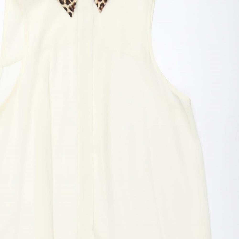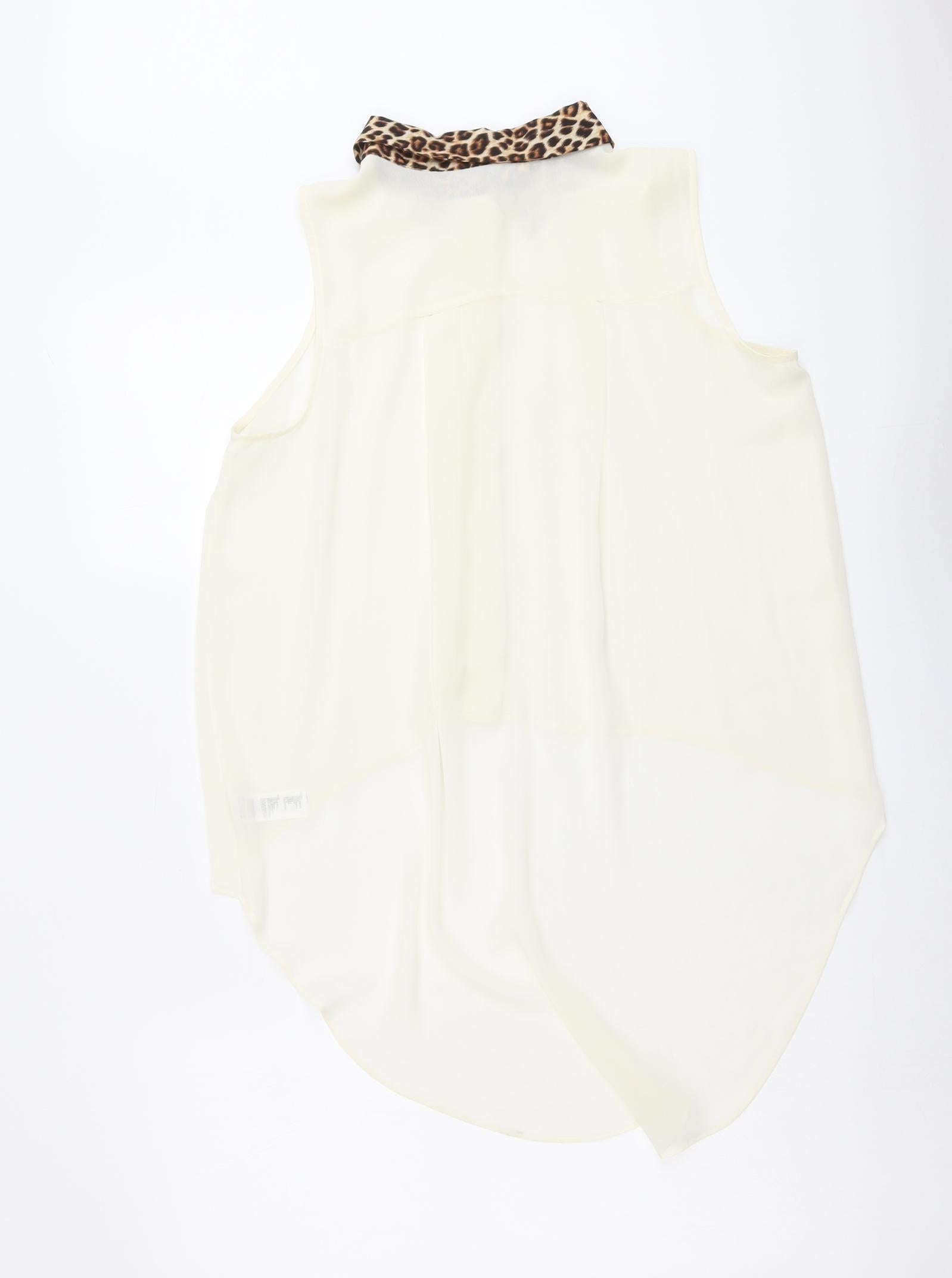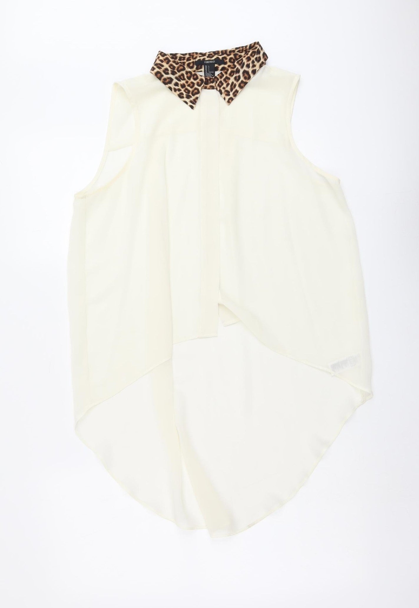 FOREVER 21 Womens Ivory Animal Print Polyester Basic Tank Size L Collared - Leopard Print