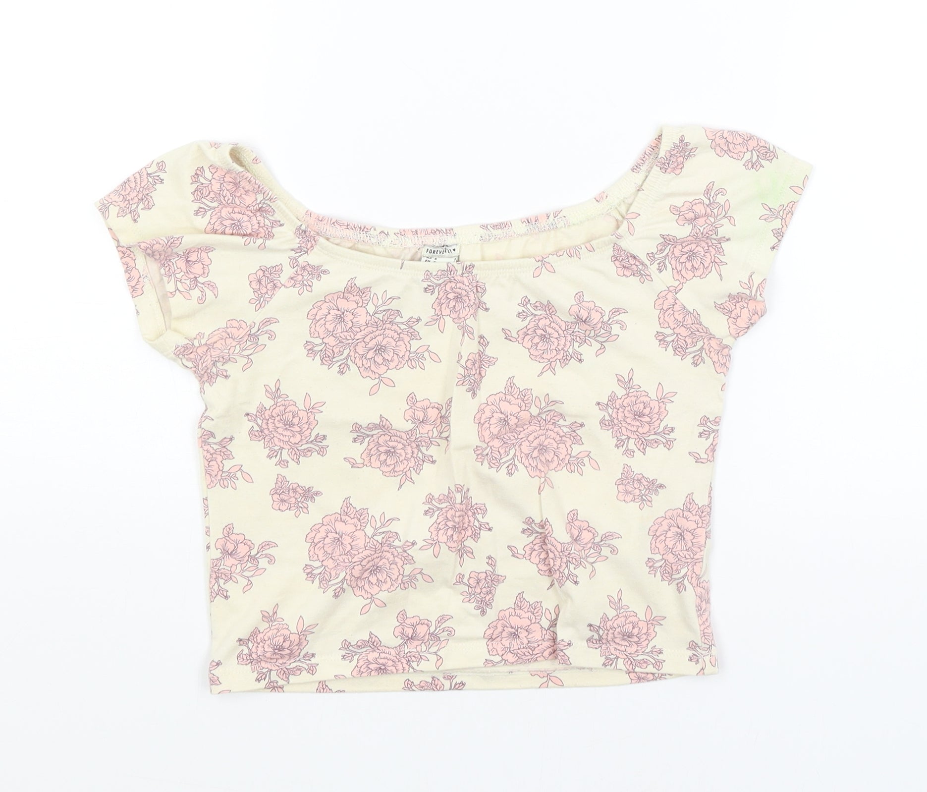 FOREVER 21 Womens Ivory Floral Cropped T-Shirt Size S