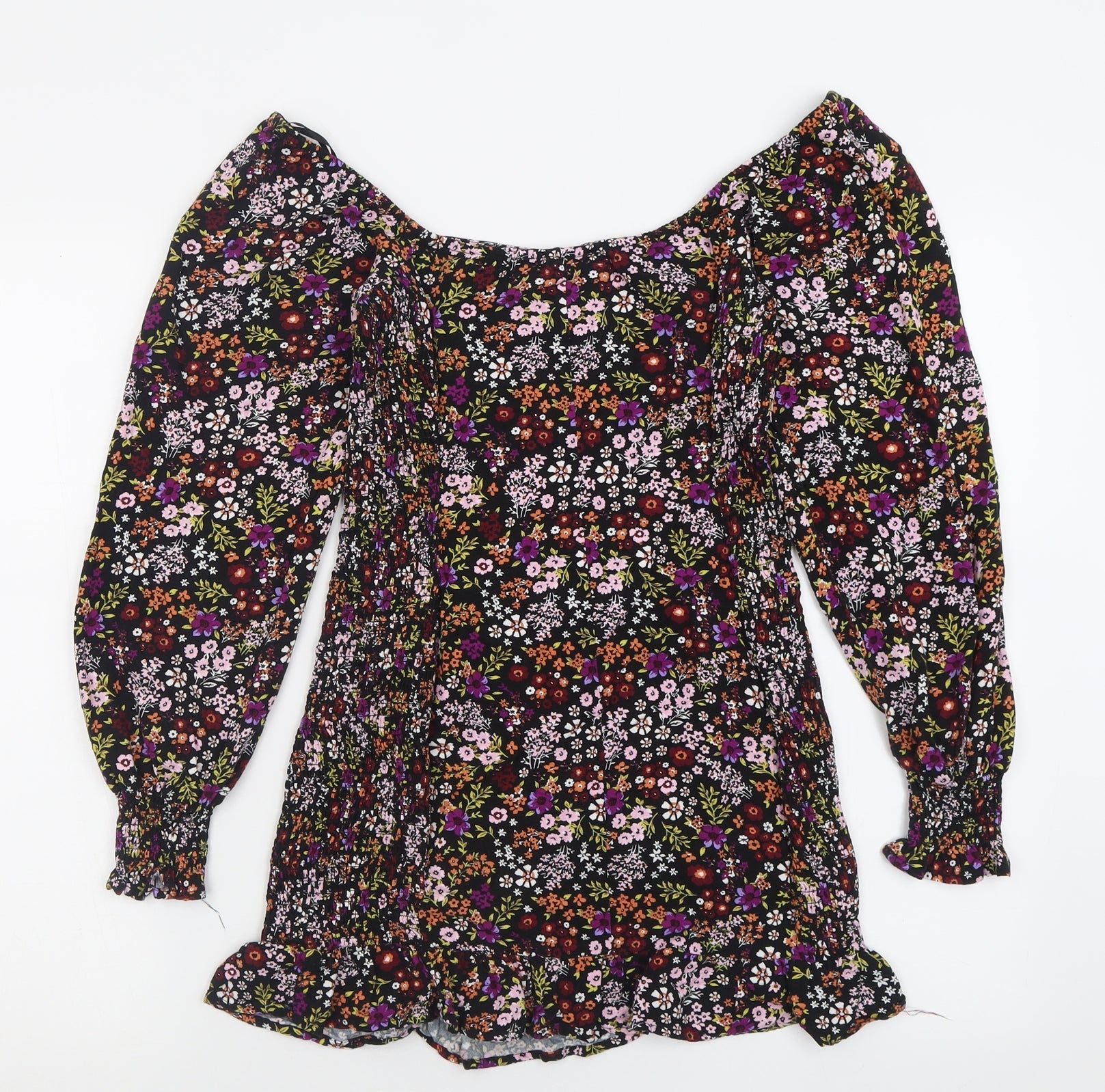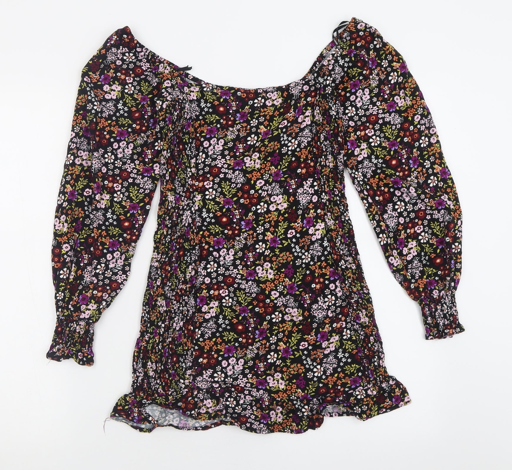 FOREVER 21 Womens Multicoloured Floral Viscose Basic T-Shirt Size S Off the Shoulder