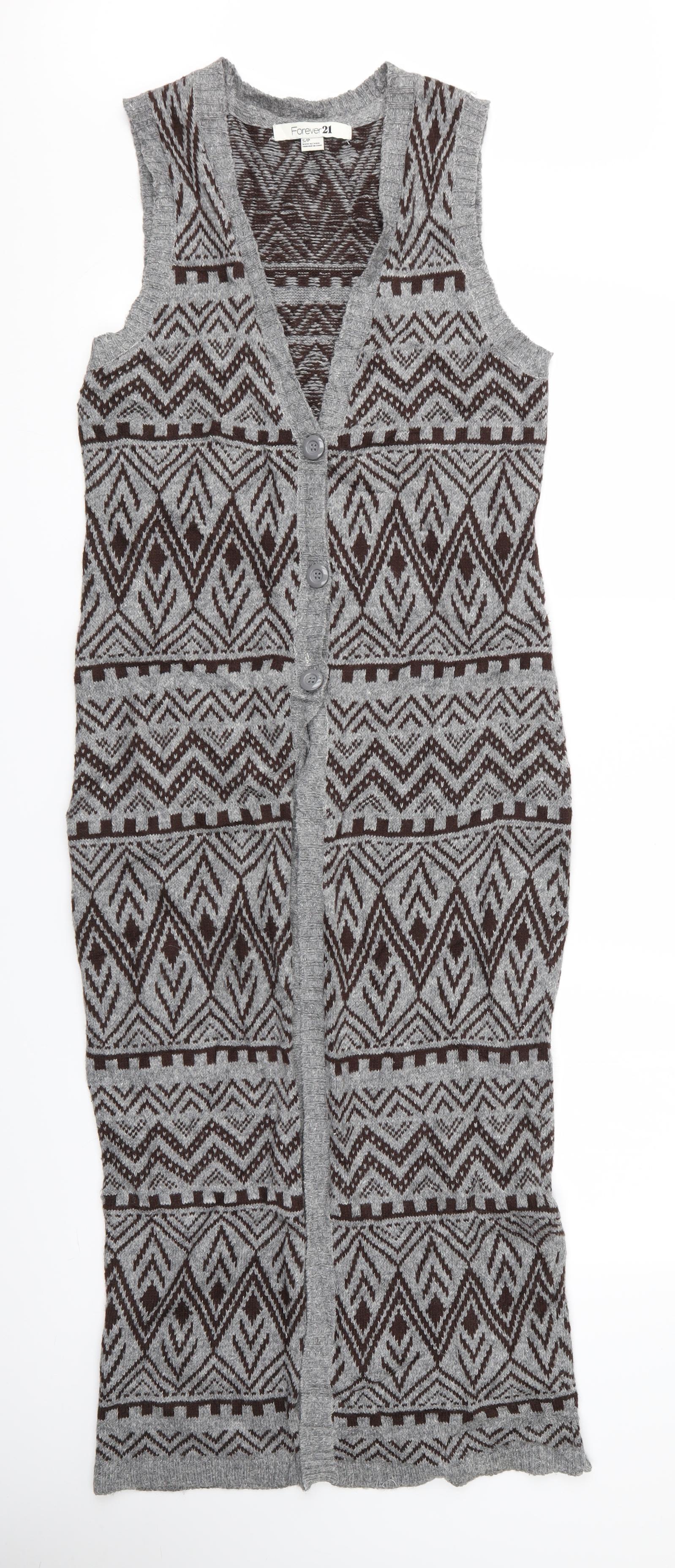 FOREVER 21 Womens Multicoloured Geometric Cardigan Jumper Size S - Longline Knit Waistcoat