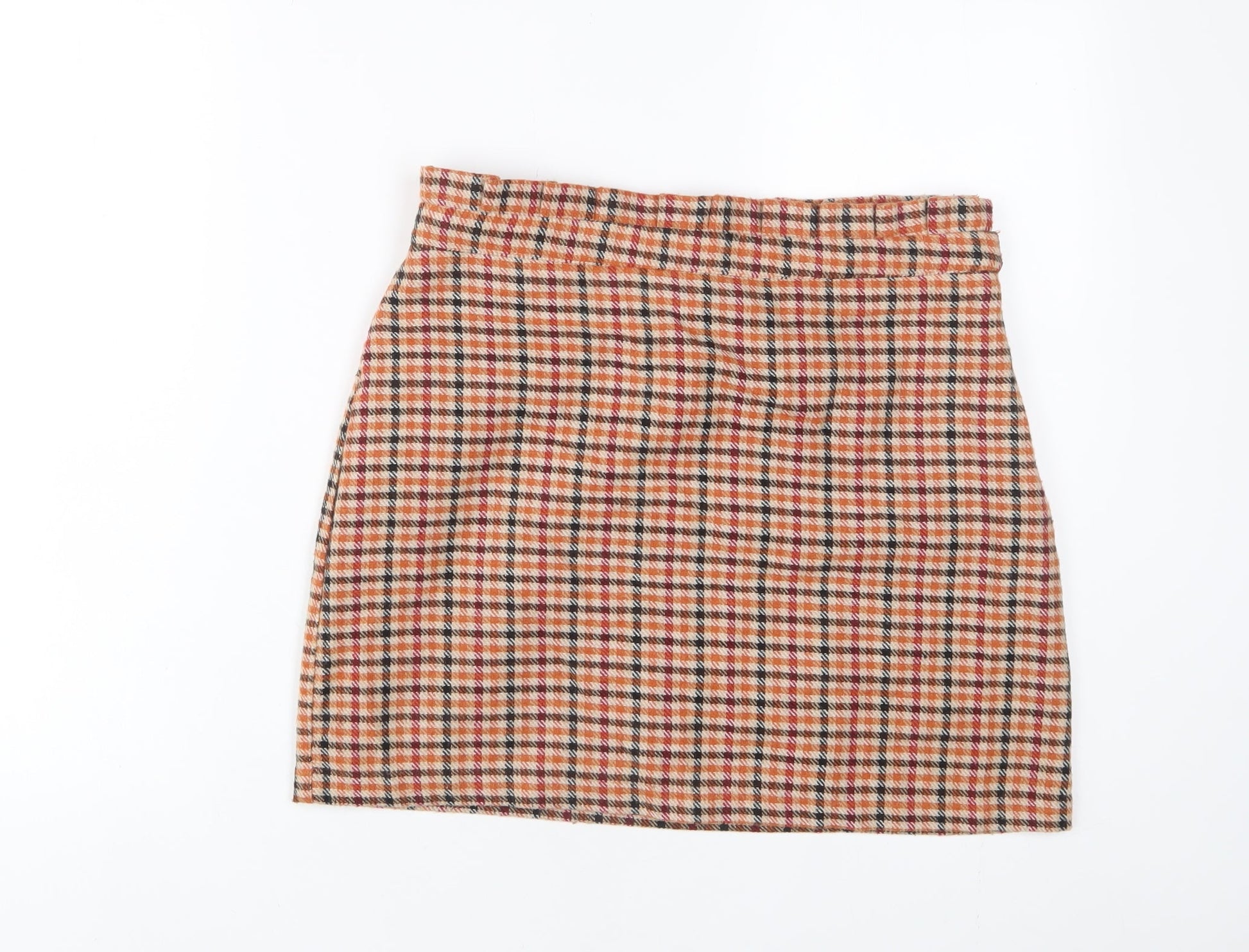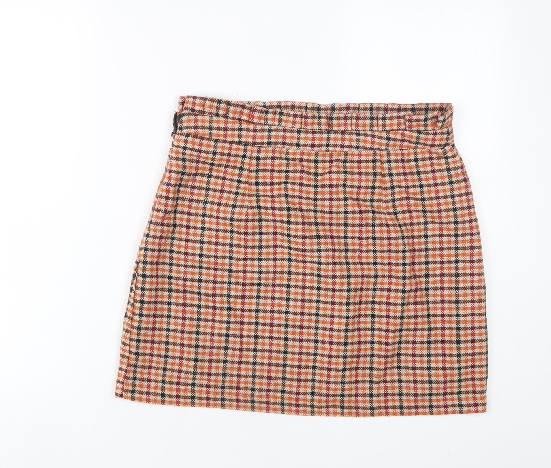 FOREVER 21 Womens Orange Plaid Polyester A-Line Skirt Size L Zip