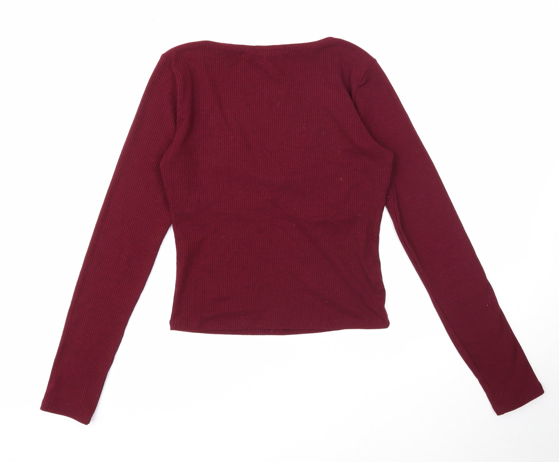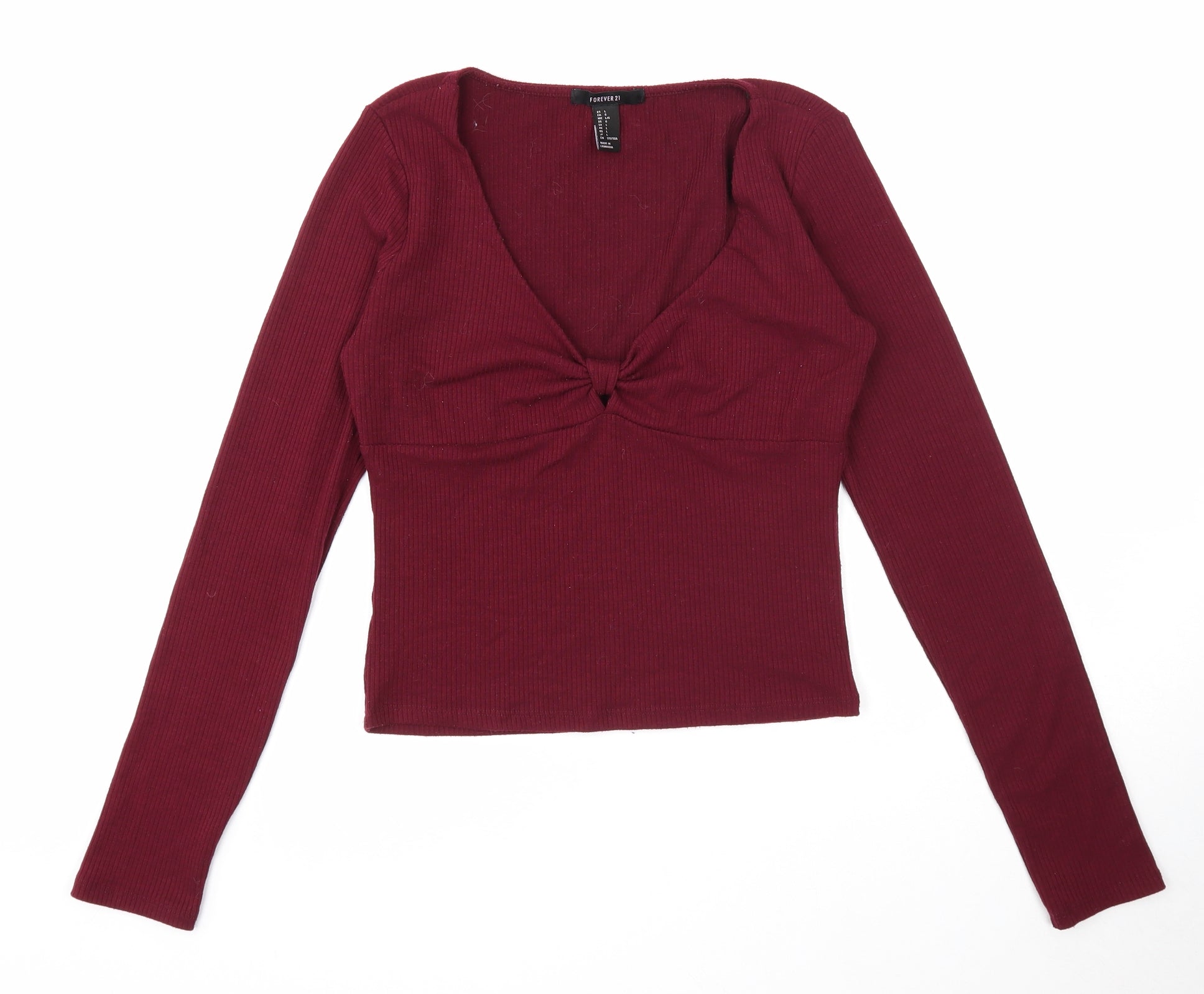 FOREVER 21 Womens Purple Cotton Basic T-Shirt Size L V-Neck - Knot Detail