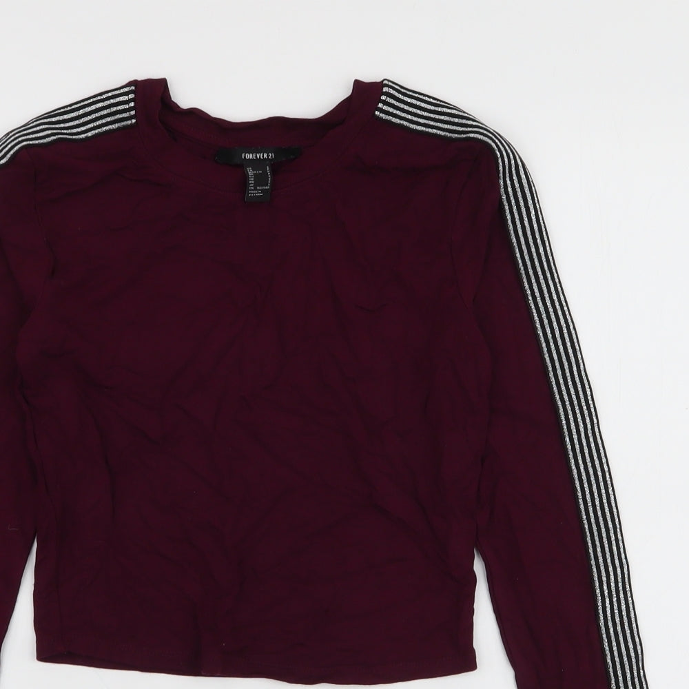 FOREVER 21 Womens Purple Cropped T-Shirt Size S Round Neck