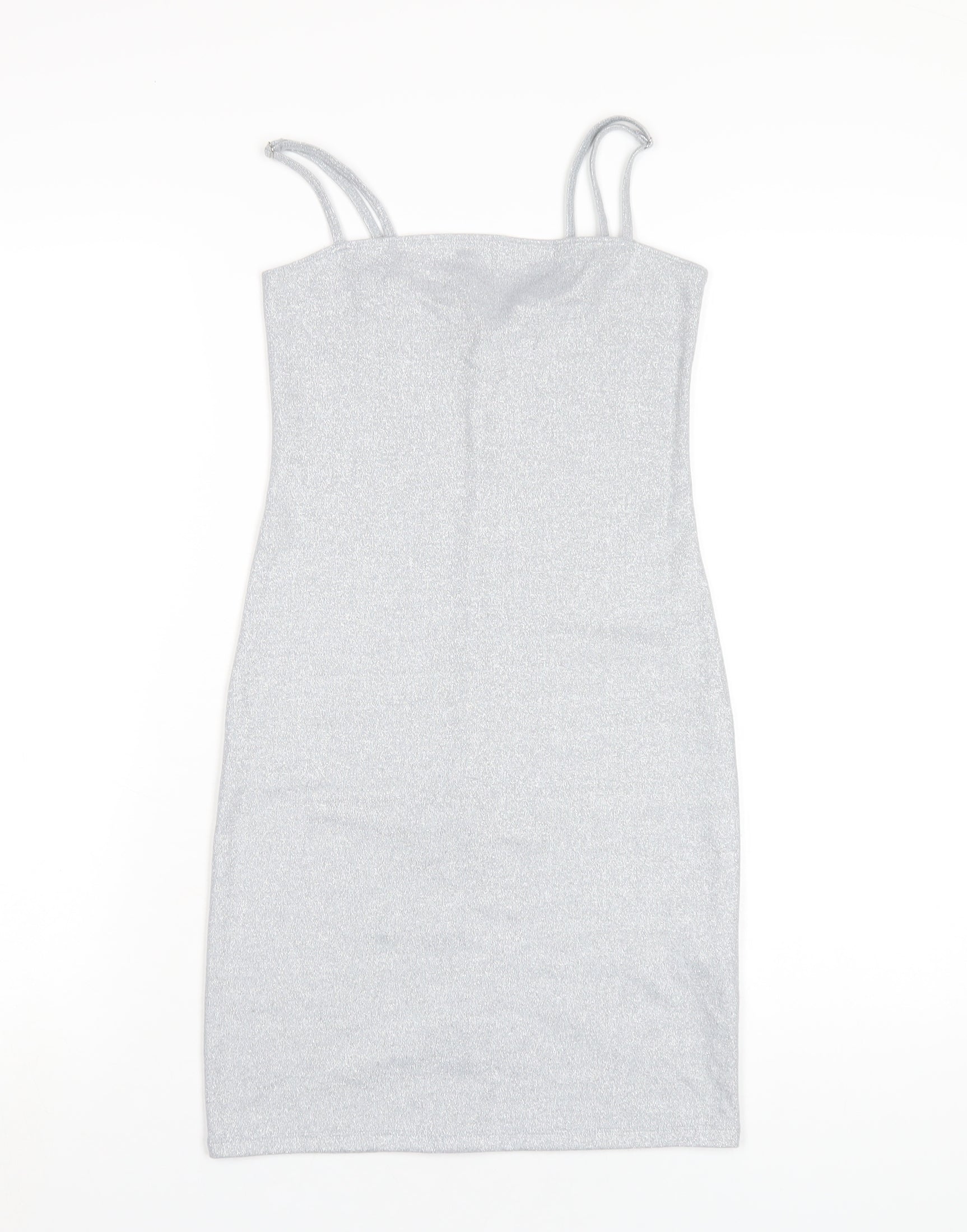 FOREVER 21 Womens Silver Polyester Bodycon Size S Square Neck Pullover