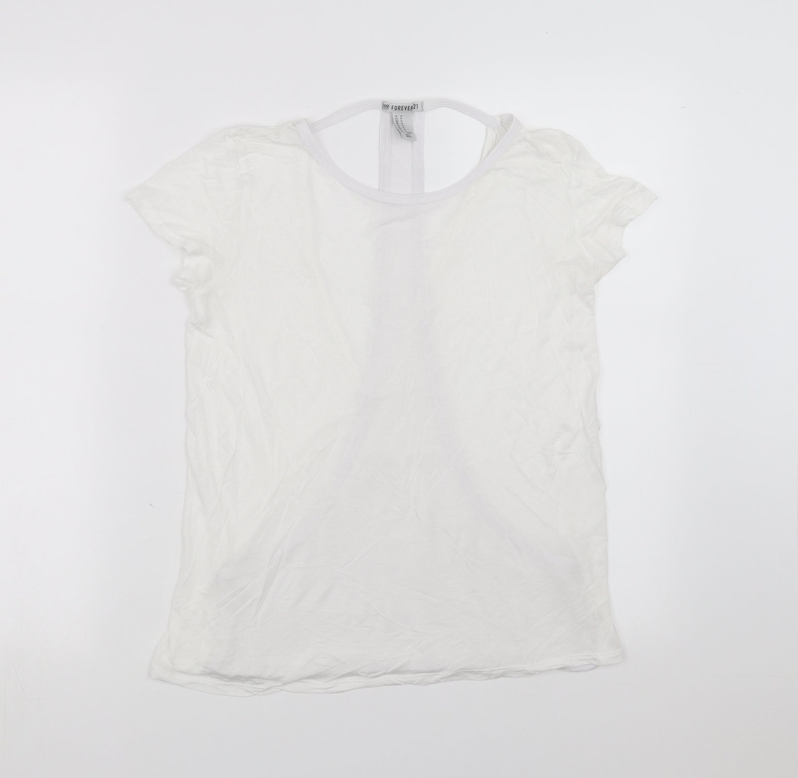 FOREVER 21 Womens White Basic T-Shirt Size M - open back