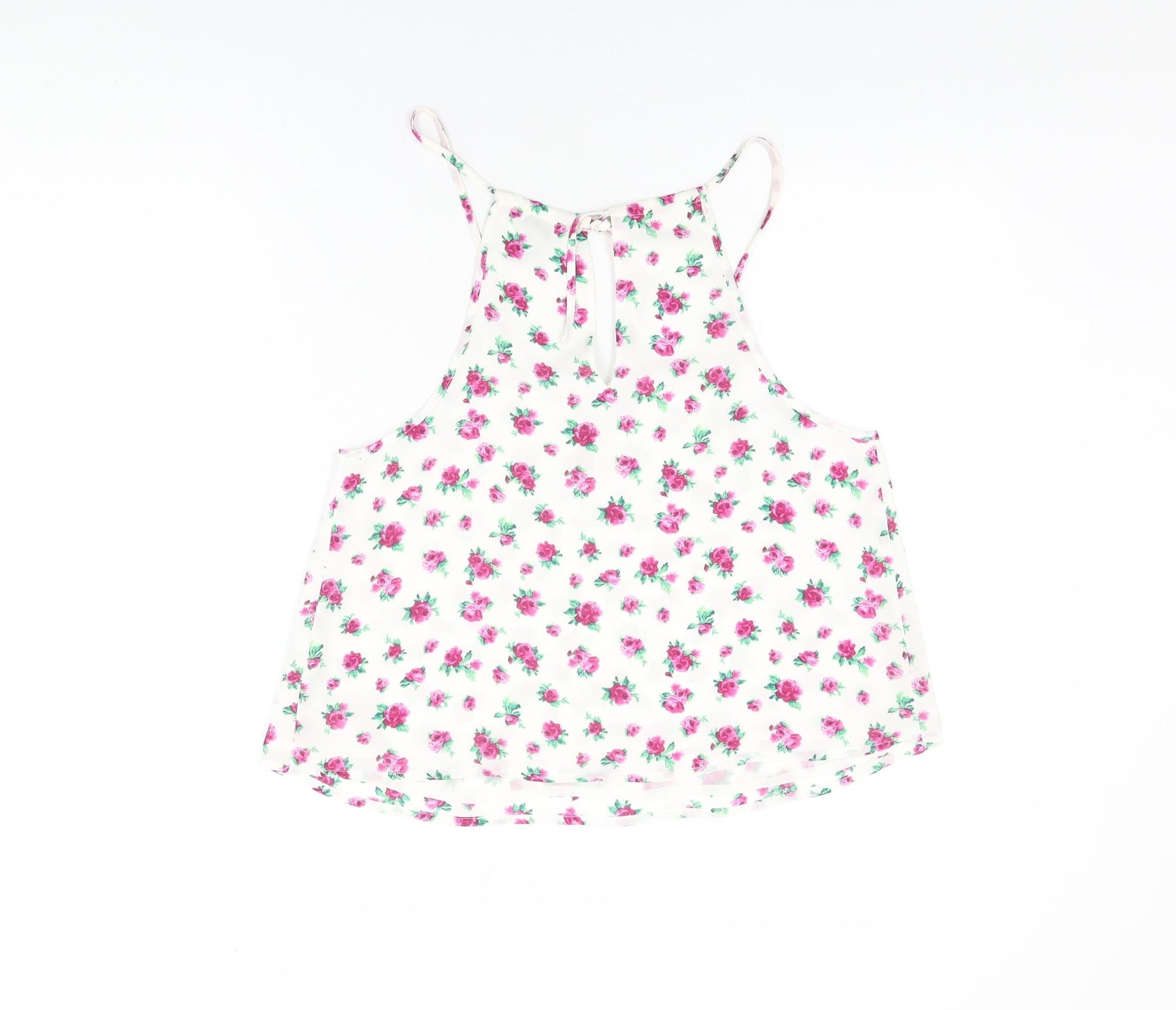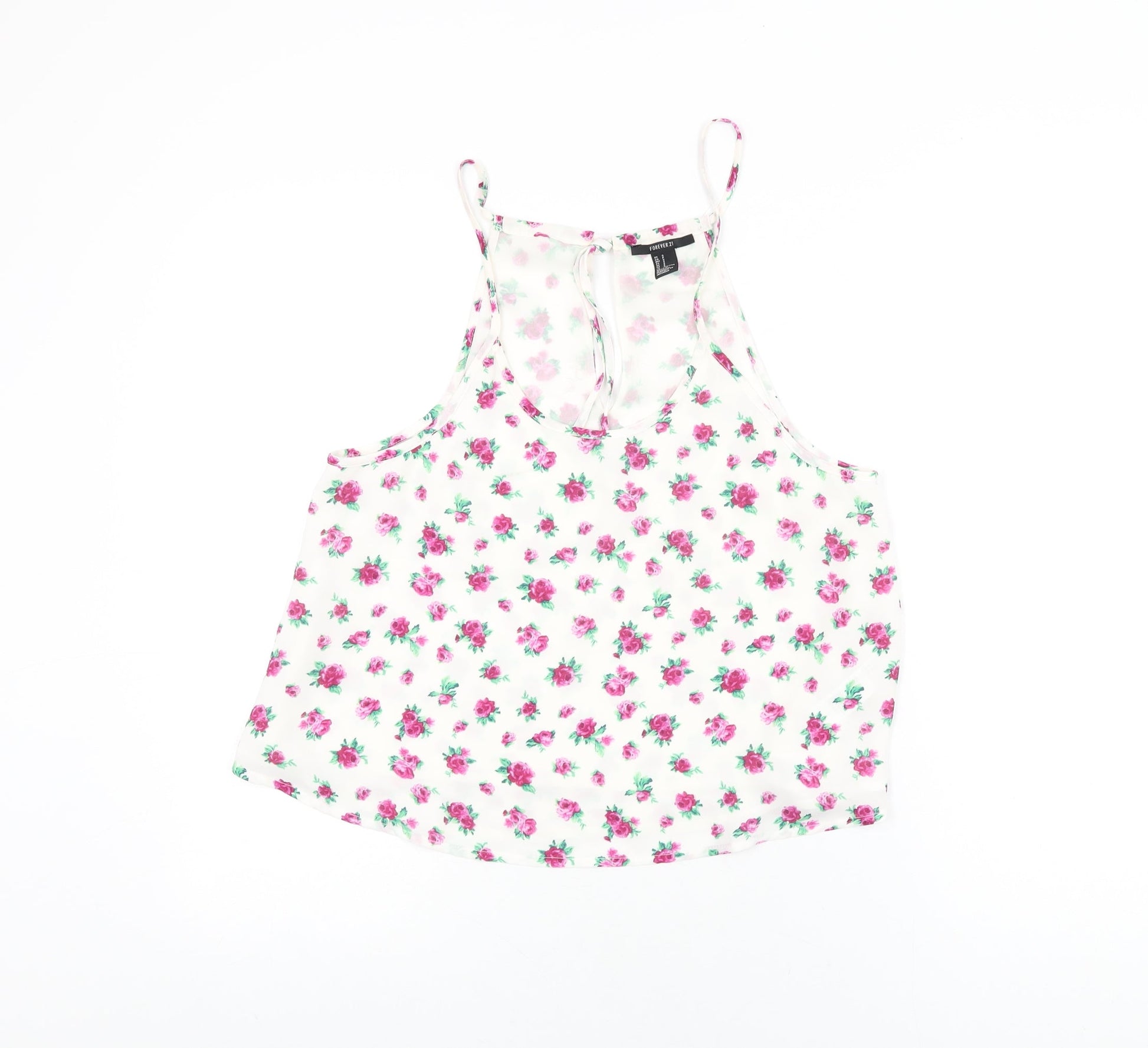 FOREVER 21 Womens White Floral Polyester Camisole T-Shirt Size S Scoop Neck