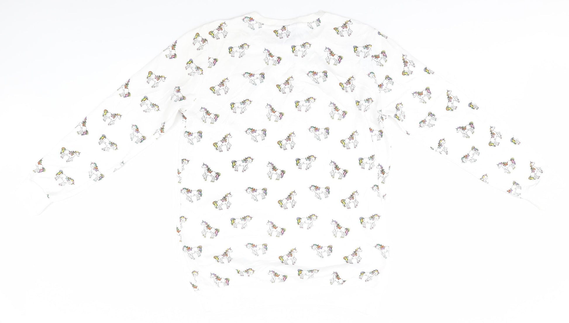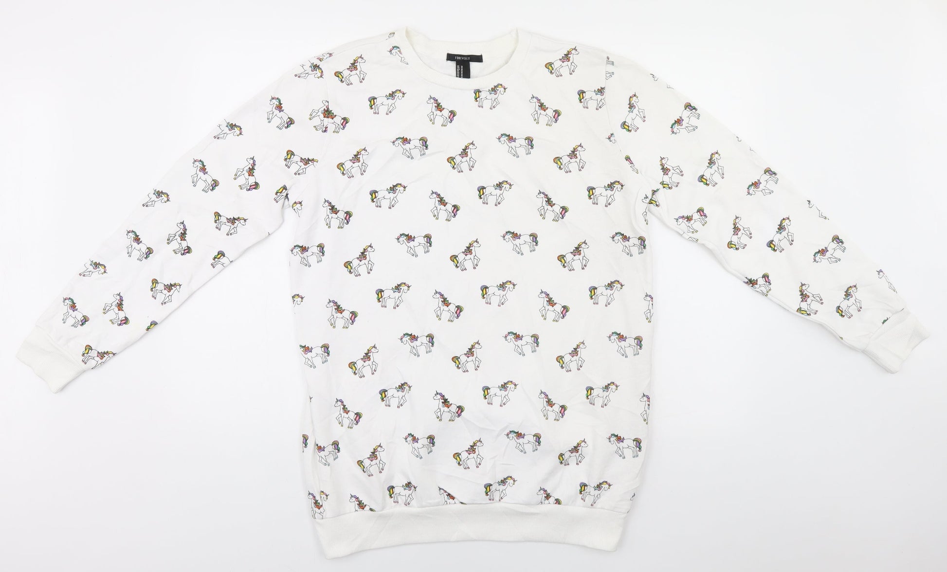 FOREVER 21 Womens White Round Neck Animal Print Cotton Pullover Jumper Size M - Unicorns