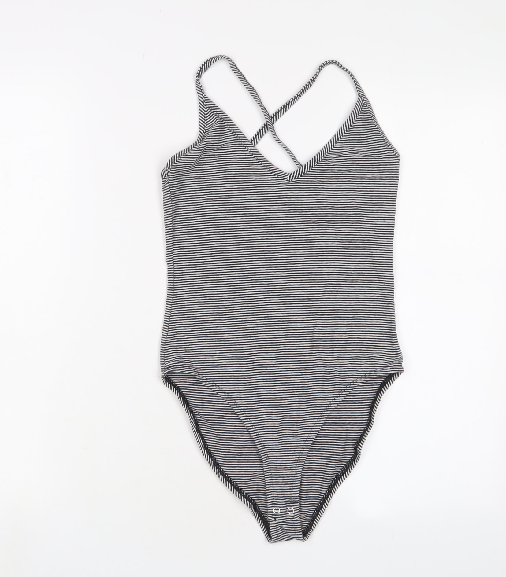 FOREVER 21 Womens White Striped Cotton Bodysuit One-Piece Size S Snap