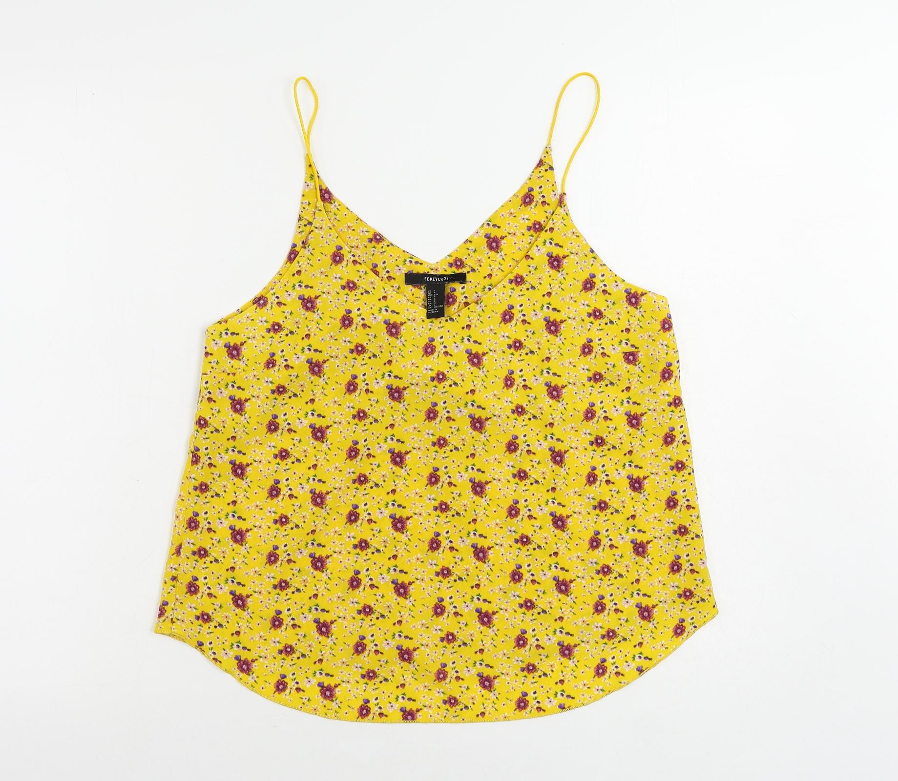 FOREVER 21 Womens Yellow Floral Polyester Camisole Tank Size S V-Neck
