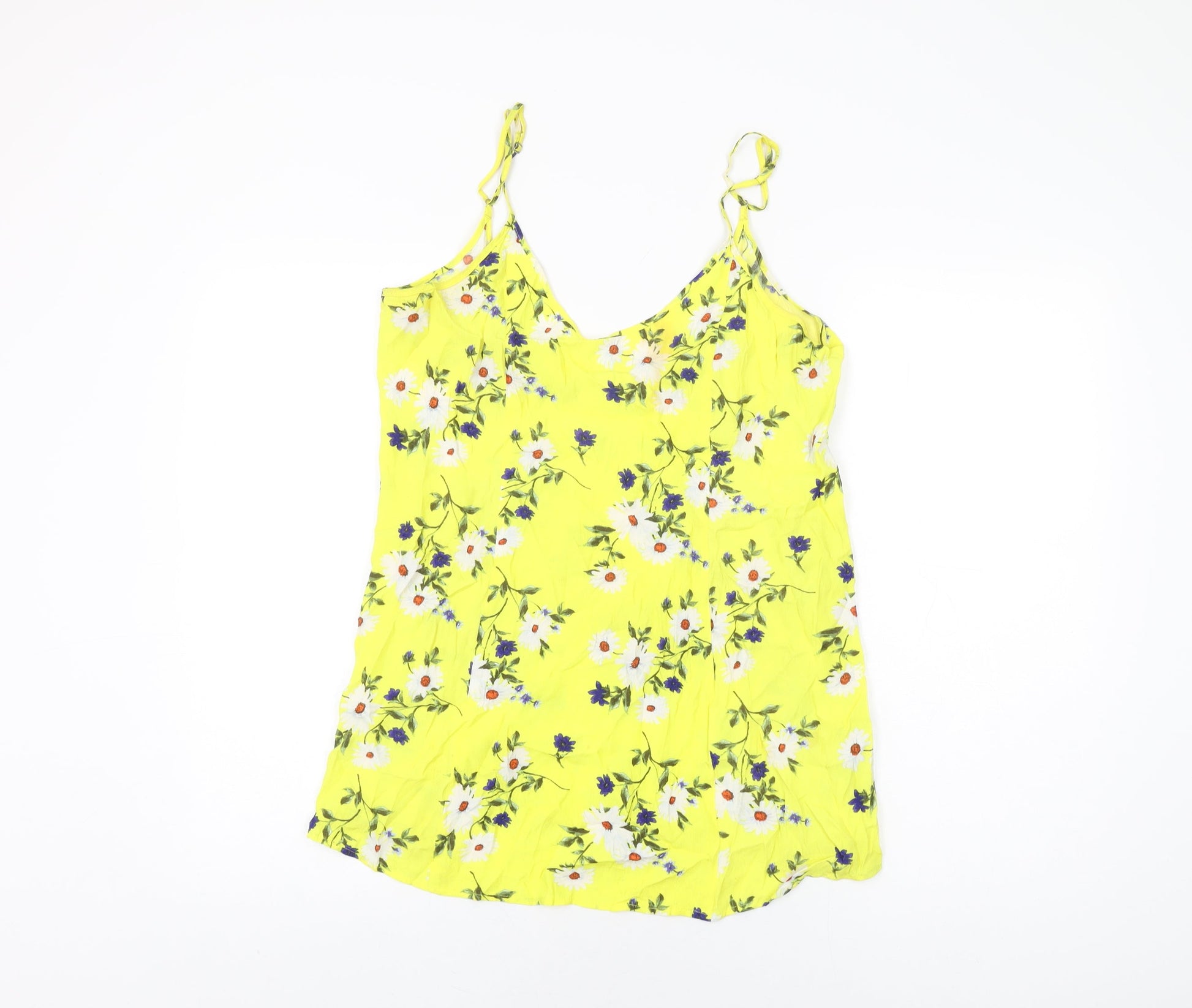 FOREVER 21 Womens Yellow Floral Viscose Camisole T-Shirt Size S Scoop Neck