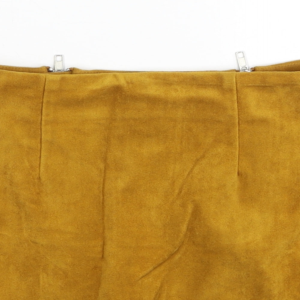 FOREVER 21 Womens Yellow Polyester Mini Skirt Size S Zip