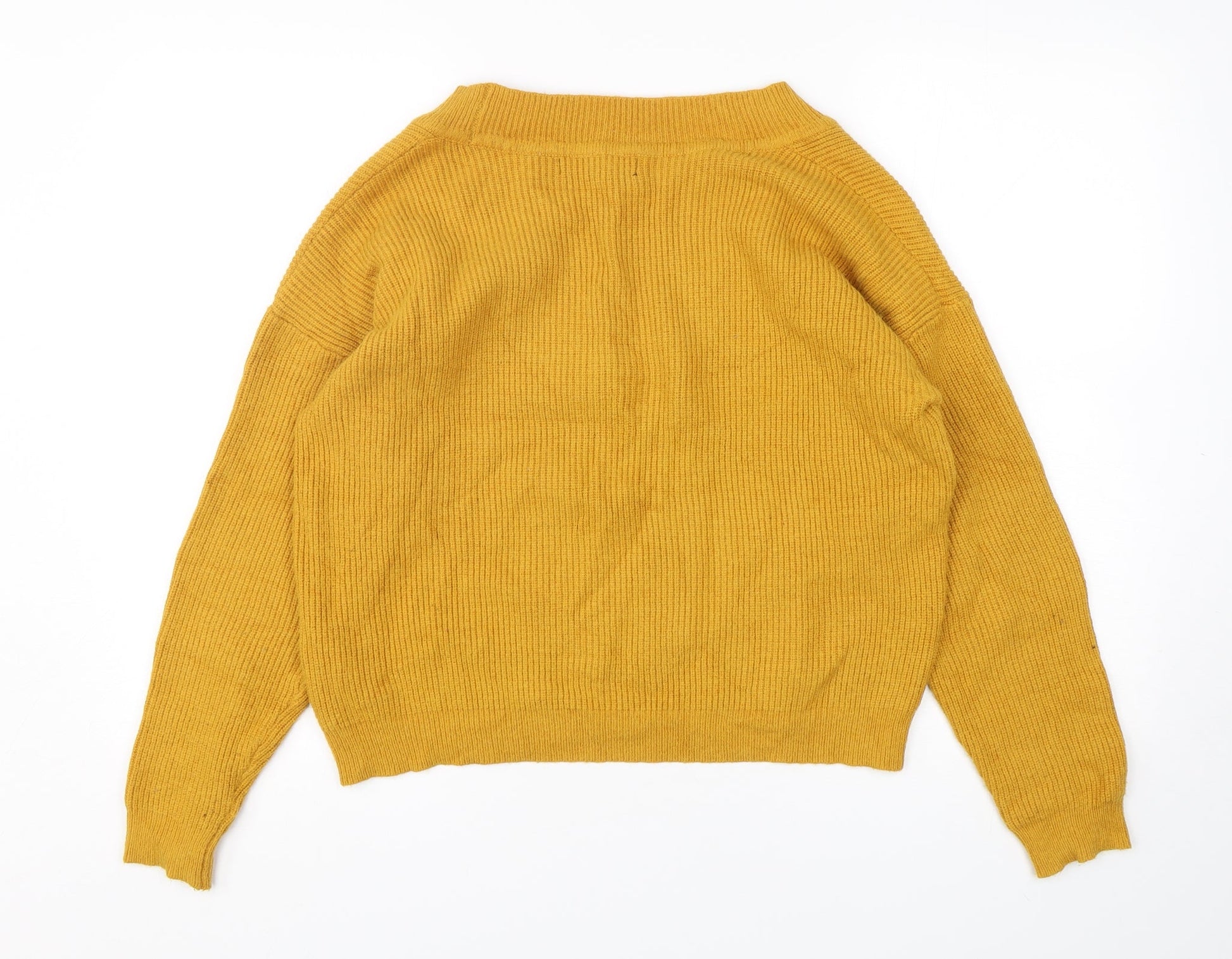 FOREVER 21 Womens Yellow V-Neck Rayon Pullover Jumper Size M