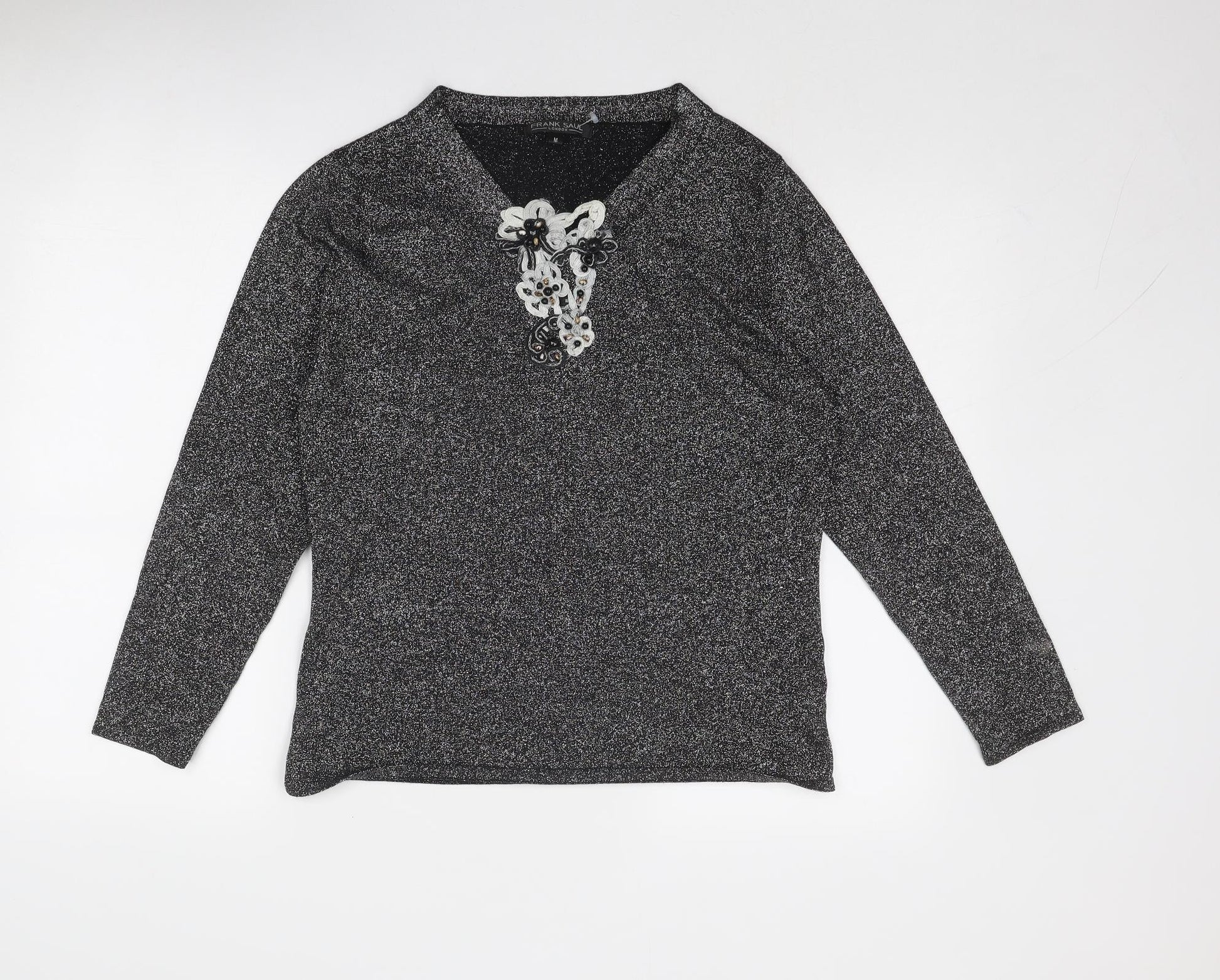 Frank Saul Womens Silver V-Neck Viscose Pullover Jumper Size M