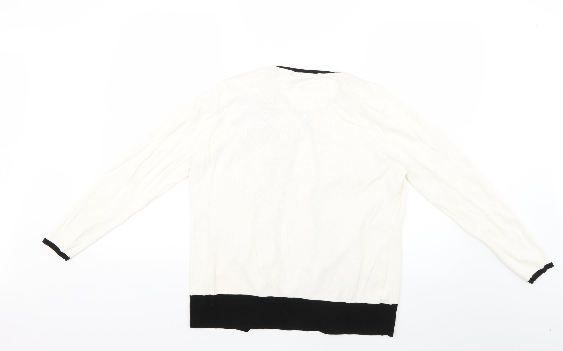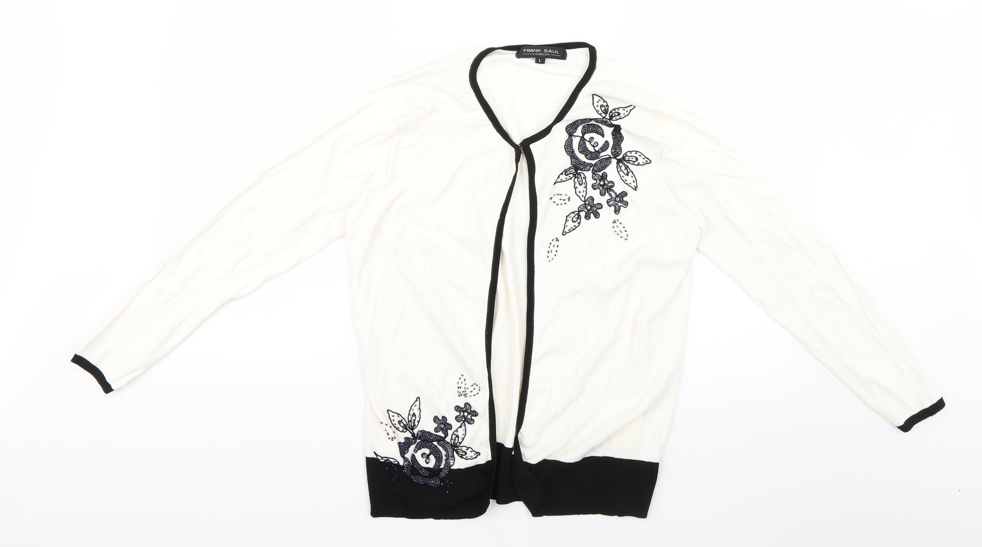 frank saul Womens White Geometric Knit Cardigan Jumper Size L