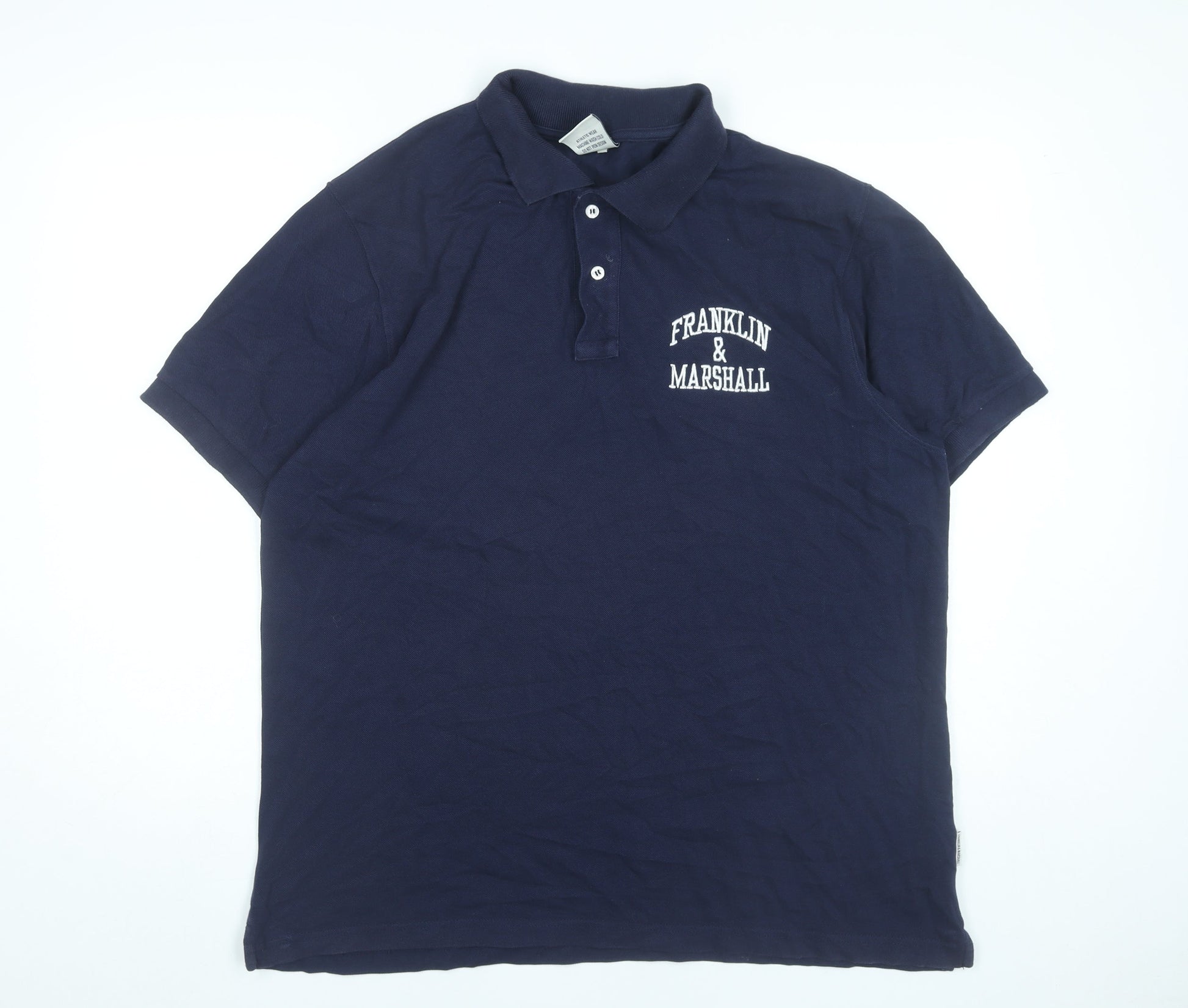Franklin & Marshall Men’s Blue Polo Shirt L Cotton Logo Casual