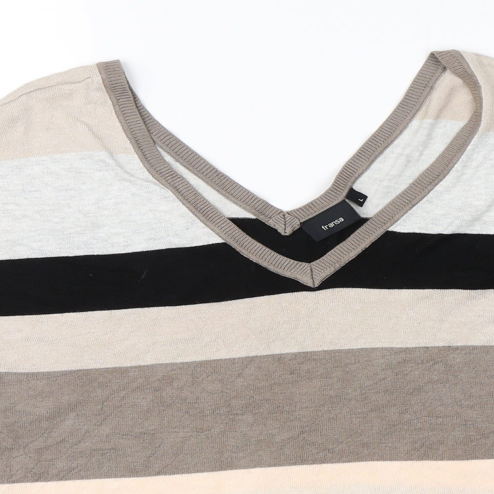 Fransa Womens Brown Striped Basic Blouse Size L